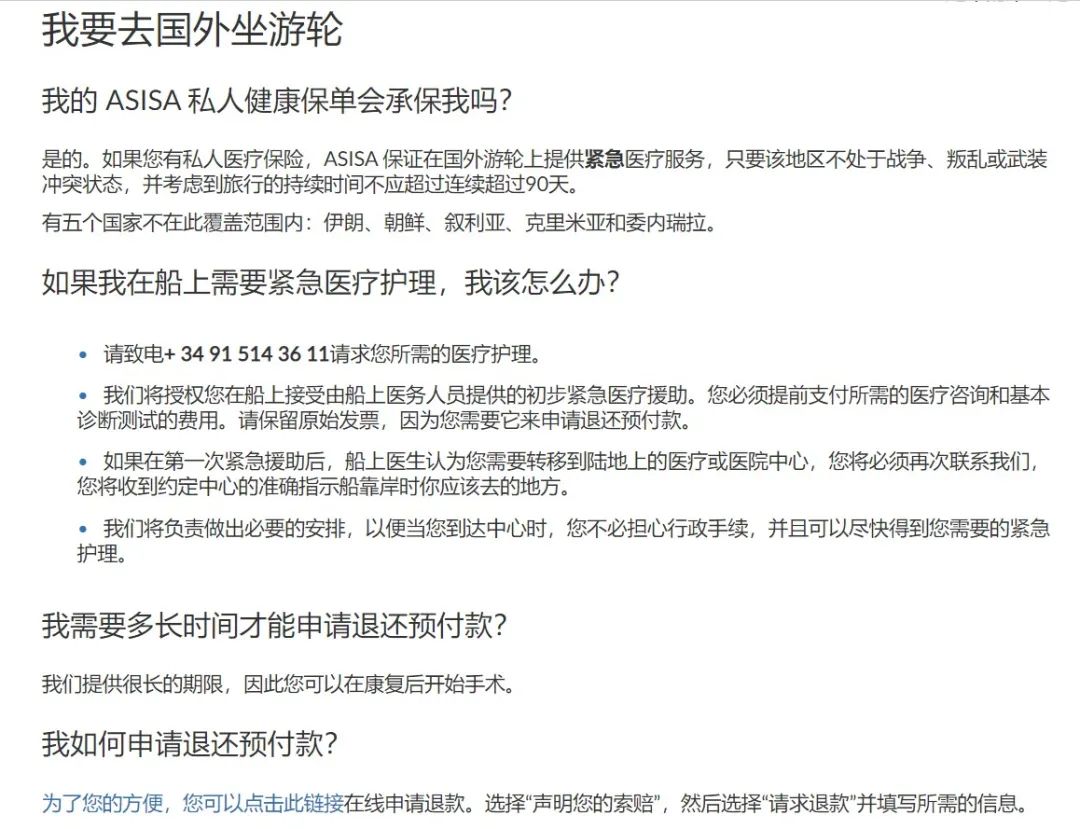 我选择的是游轮旅行,万一我不适应船上的生活,遇到晕船或者其它身体不适等紧急的情况可以联系Asisa保险吗?