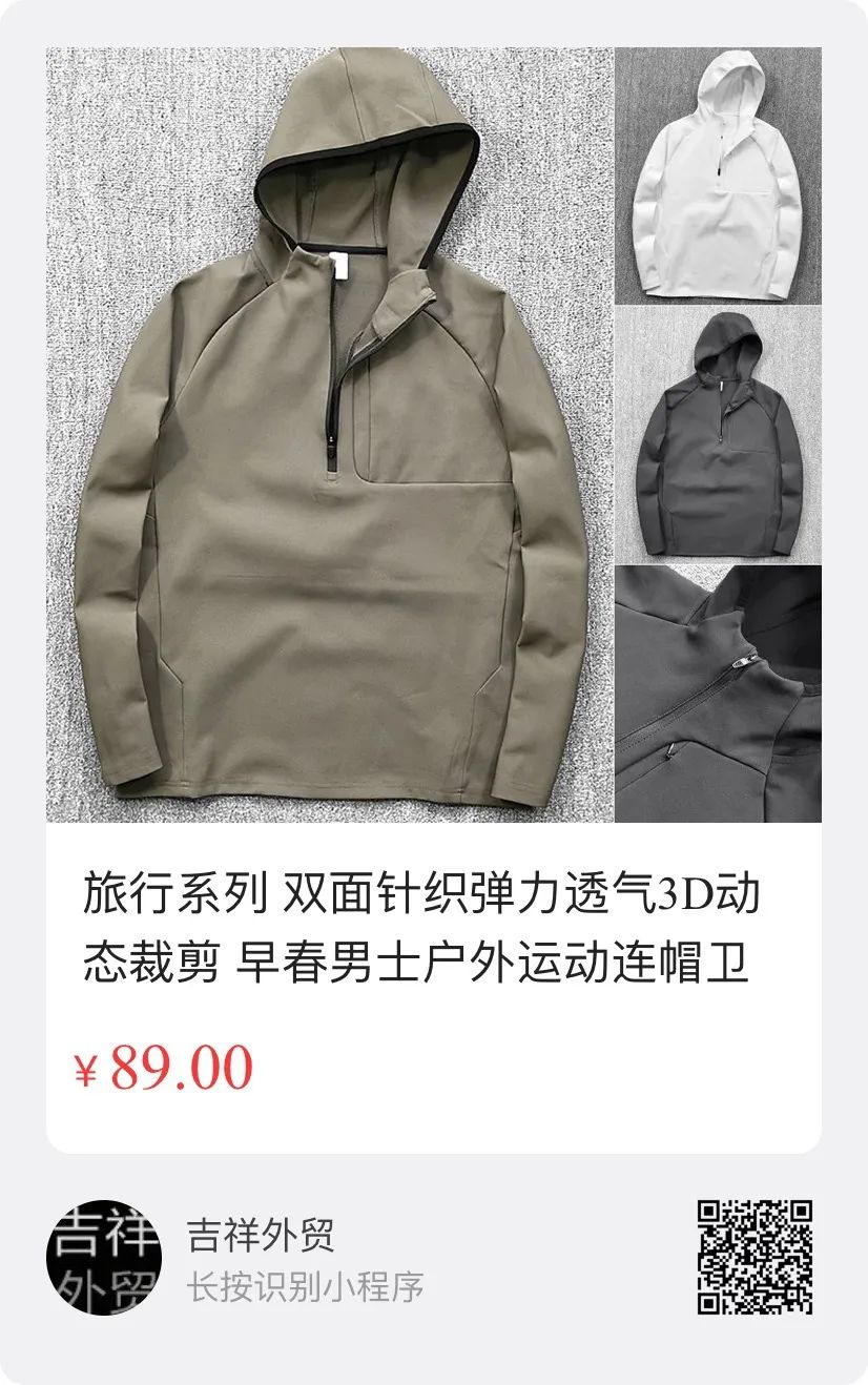 【淘宝】https://m.tb.cn/h.5vyrTkg?tk=31B5WmzDUfj CZ3452 「旅行系列 双面针织弹力透气3D动态裁剪 早春男士户外运动连帽卫衣」