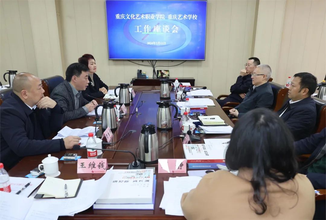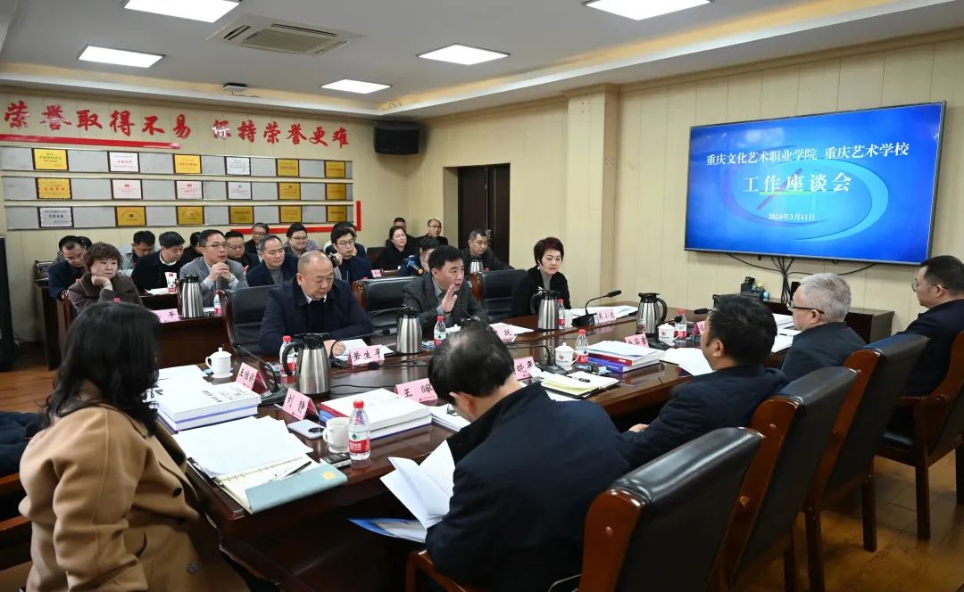 最后在我校行政楼会议室,召开重庆文化艺术职业学院 重庆艺术学校工作座谈会。我校党委书记梁跃,艺校党总支副书记、校长黄生平分别做工作汇报。市文化旅游委人事处、组织干部处、财务处就相关事项做了工作交流。
