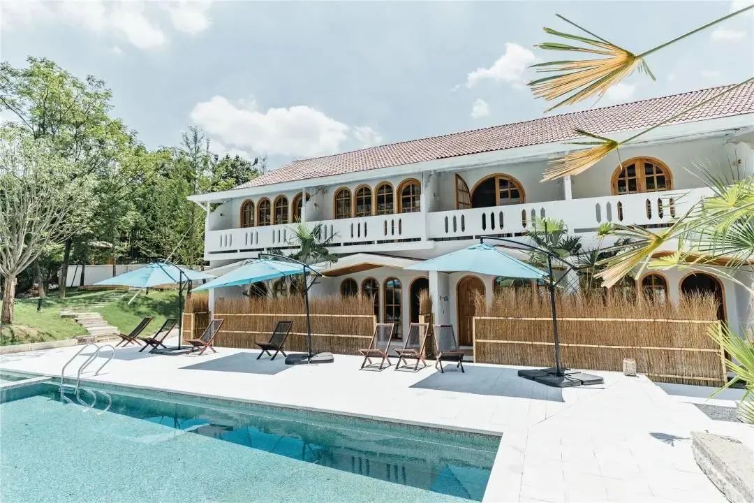 08言叶之庭 该民宿采用的是地中海风格的白色建筑,配上大大的泳池,分分钟是度假的节奏。