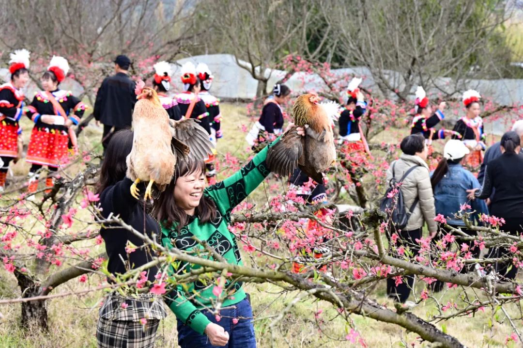 瑶族布袋木狮舞、舞马鹿、唱春牛等非遗表演,“五大百亿农业产业”特色农产品、连州非遗特色美食腊味、黄精酒展位,百人“水陆空”三场景齐跳“科目三”舞蹈表演,桃园抓鸡……活动现场项目丰富,为游客带来别具风情的农文旅体验。