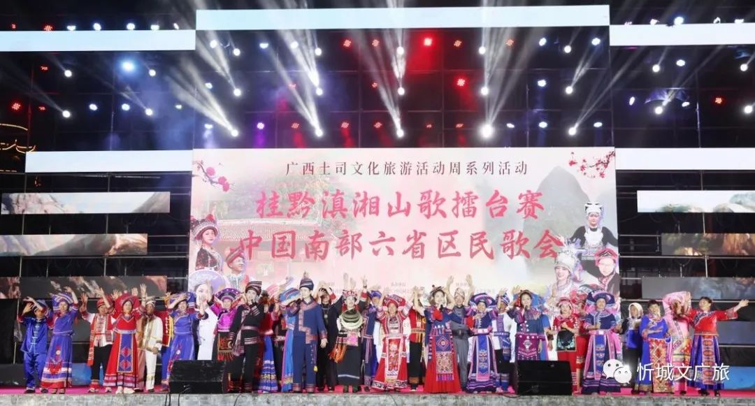 5月18日至20日,由自治区文联,来宾市文广旅局、文联,忻城县委、县政府共同主办广西土司文化旅游活动周系列活动——桂黔滇湘山歌擂台赛、中国南部六省区民歌会活动在来宾市忻城县精彩上演。