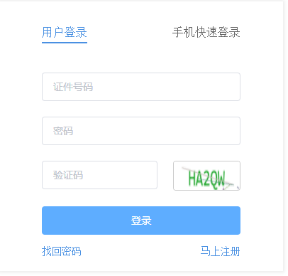 2、选择考试省市后,输入注册时的证件号或者手机号及登录密码,填写验证码,点击“登录”即可进入系统查询成绩。