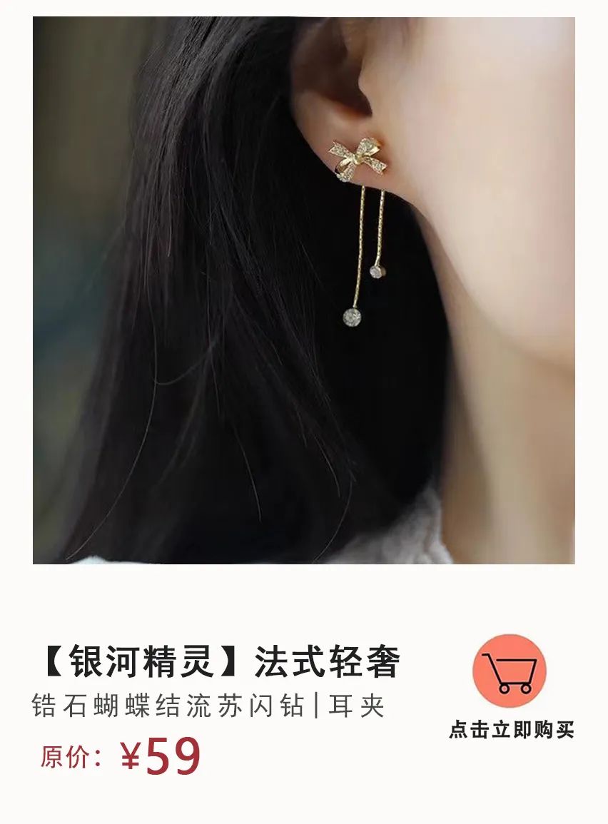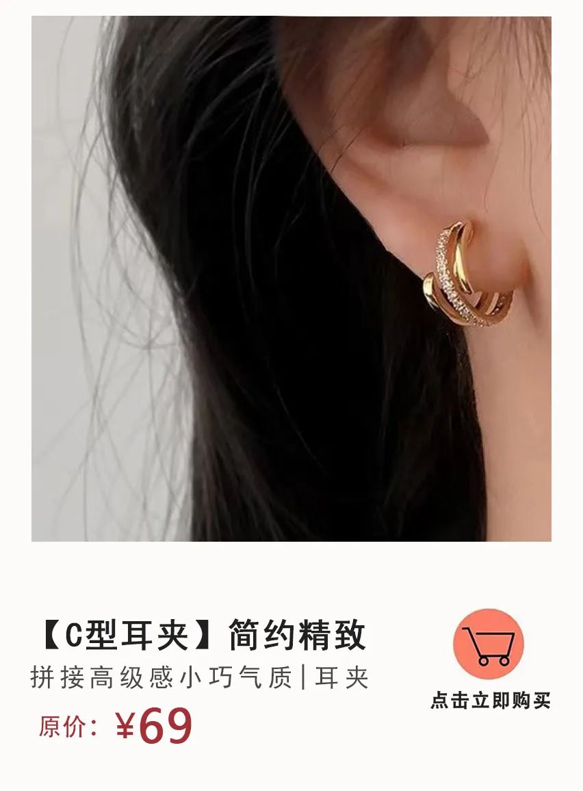 这款精致小巧的耳夹适合日常通勤佩戴,能起到画龙点睛的效果,这款我真的是爱惨了,前几天逛街被两位小姐姐要链接,我朋友也说好好看,很高级,可把我开心一整天。