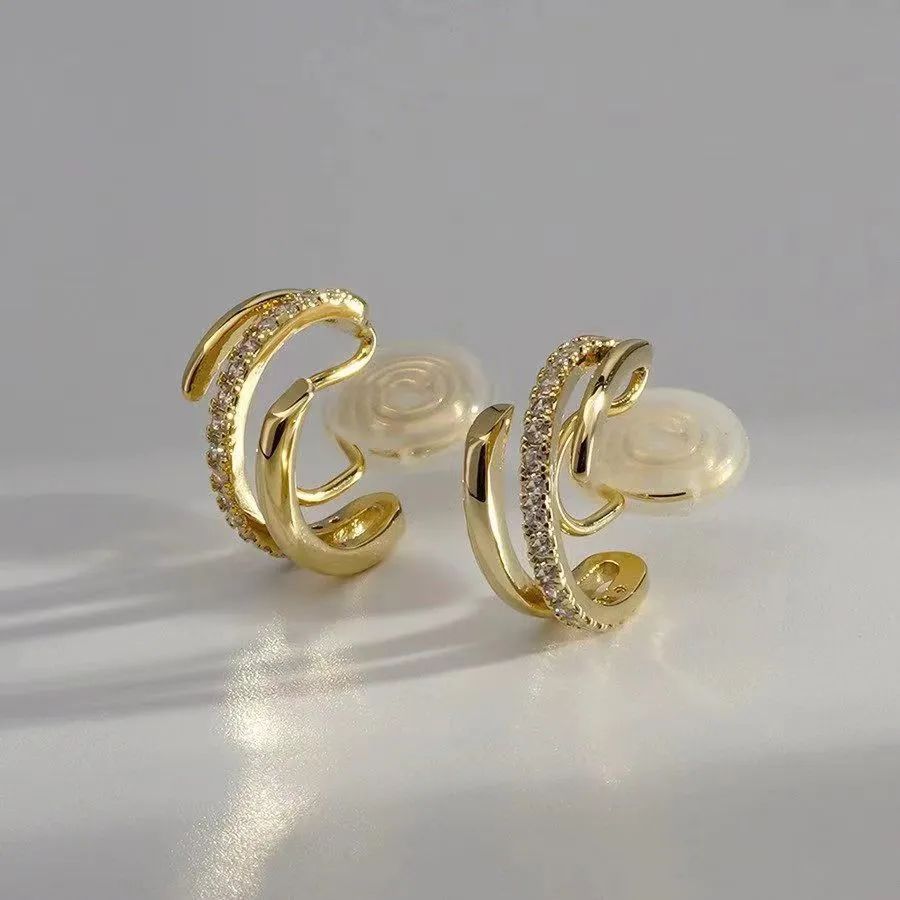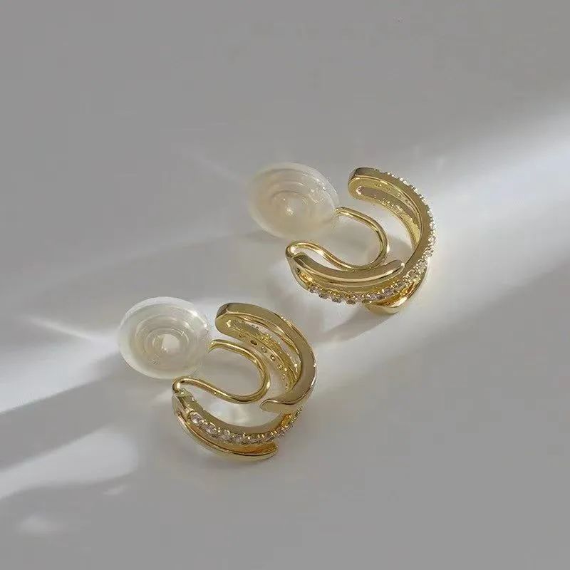 这对耳夹在基础的样式上有不一样的变化,金属圆环拼接整条碎钻足够有新意,大气又张扬。