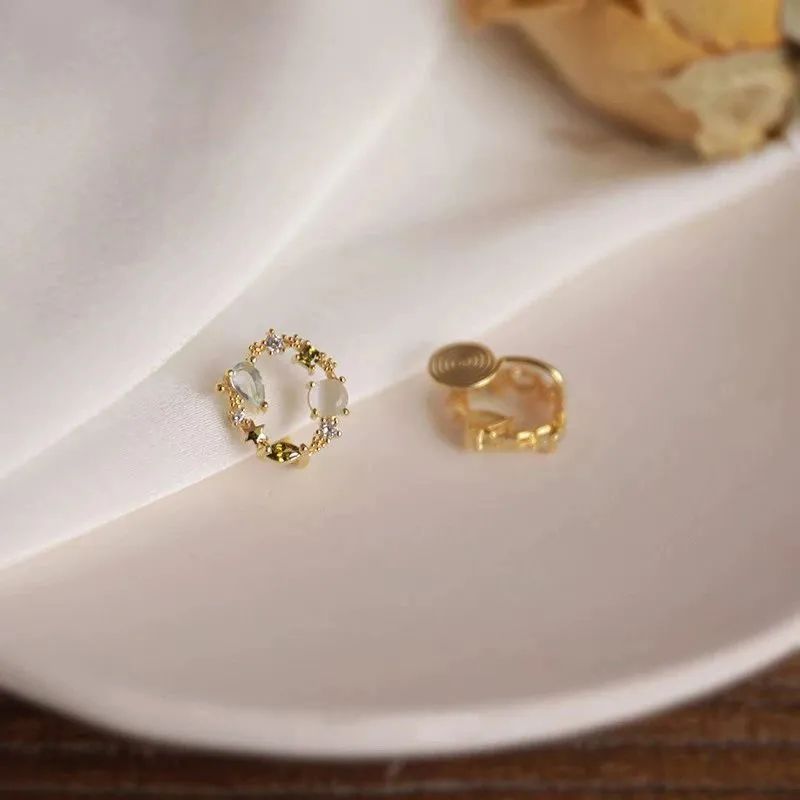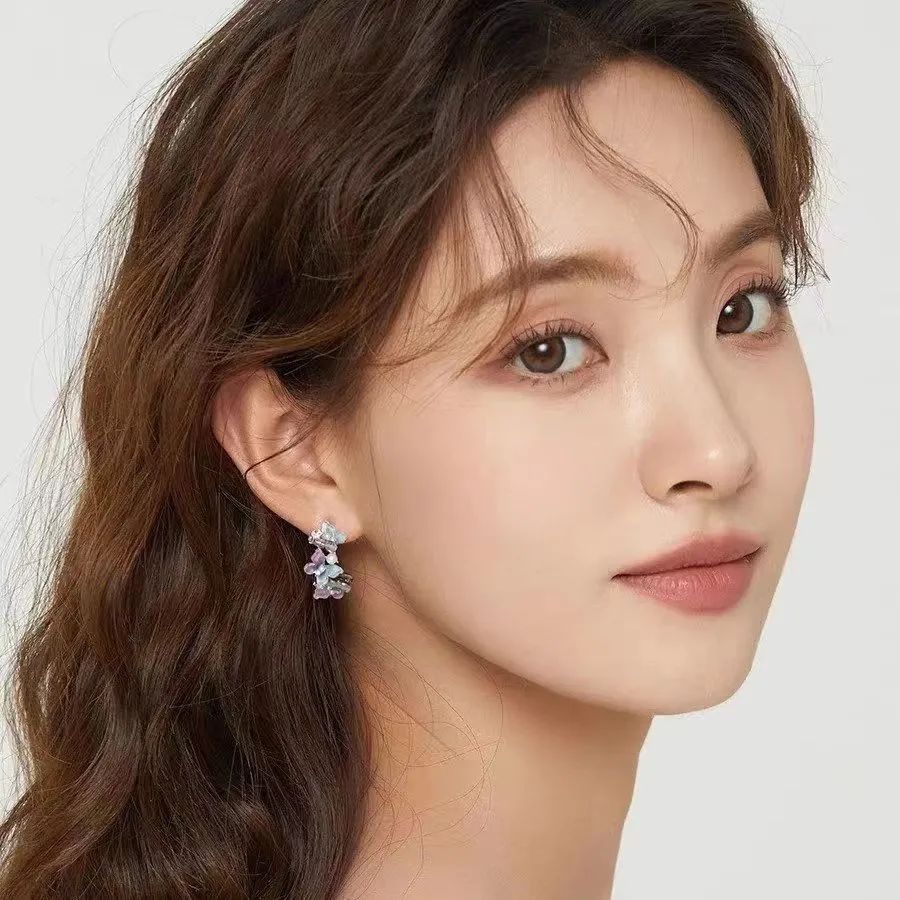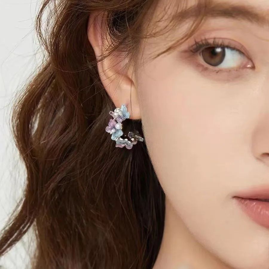 而这款耳夹和花环一样,都是圈圈形状的,各色皓石模拟鲜花的颜色,上耳以后自带仙气。