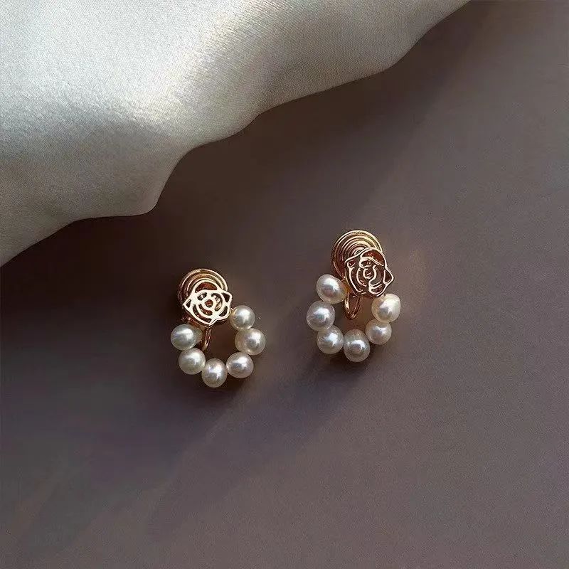 山茶花的金属造型,整个花朵呈现出开满的状态,和珍珠相映成趣,上耳舒适耐看。