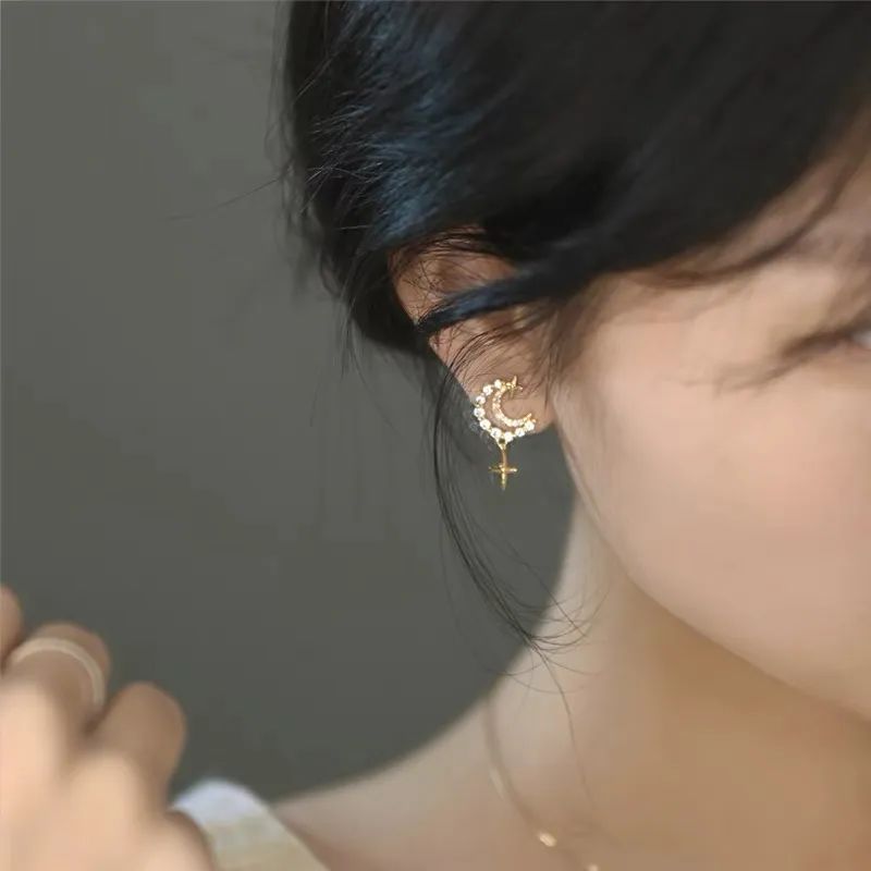 把一般的五角星设计成四角星,多了一点特别的理性化的几何设计感在里面,亮闪闪的坠在耳边,真的非常小巧可爱啊!