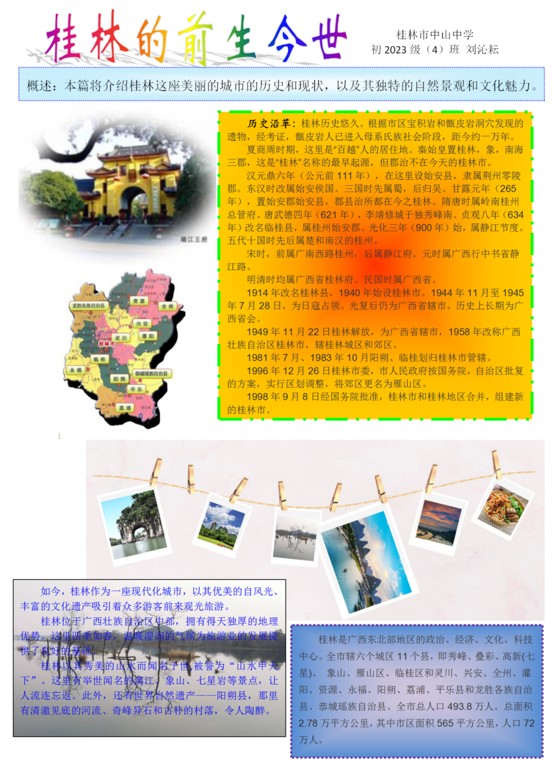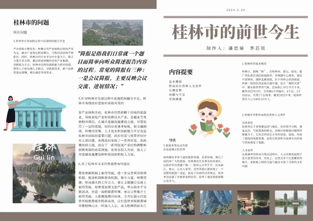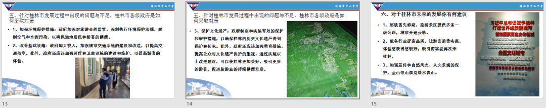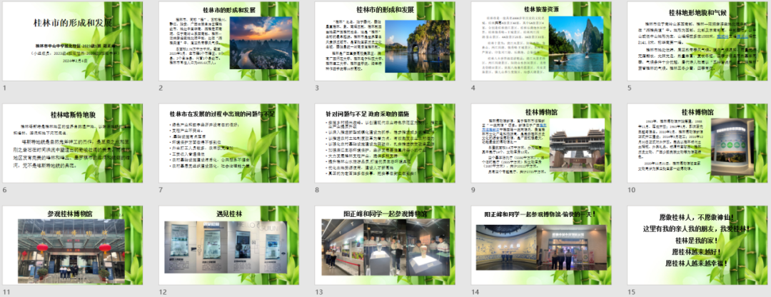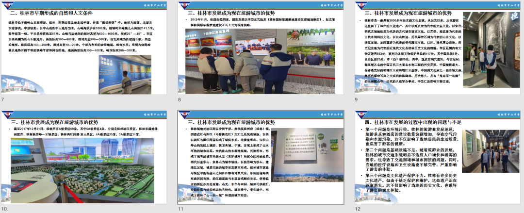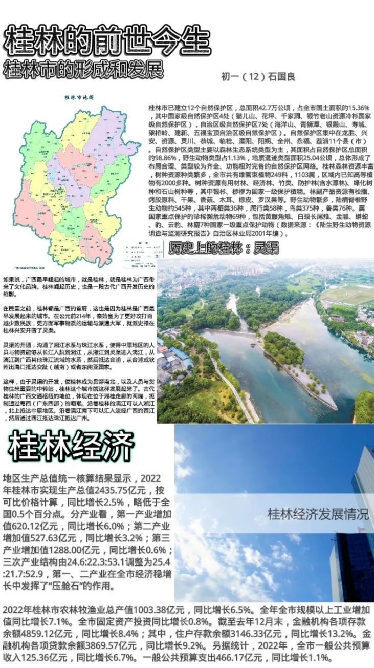 您现在的位置是:首页 > 国内旅游目的推荐 > 正文 国内旅游目的推荐 跳进地理书的旅行 探寻桂林前世今生——桂林市中山中学2023级地理寒假特色作业展示 admin2024年03月12日 00:32:02国内旅游目的推荐133 跳进地理书的旅行探寻桂林前世今生2023级地理寒假特色作业展示根据《义务教育地理课程标准(2022年版)》的要求,学生需要深入了解并热爱自己的家乡,全面认识家乡的地理环境,并在此基础上对家乡的发展提出合理建议。为此,桂林市中山中学初中地理组精心策划了一场主题为“桂林的前世今生”的跨学科实践活动。此活动通过地史跨学科融合的方式,使学生能够亲身体验桂林的地理特色、历史文化和社会变迁,进而培养学生的地理实践力、发现美的眼光以及对家乡的自豪感。为了深入了解桂林市的发展历程,参观桂林博物馆和城市规划展示馆成为不可或缺的一环。无论是个人还是团队,同学们都积极参与此次探索之旅。他们通过参观深入挖掘了桂林市的地理环境、历史文化以及未来发展规划,并积极为家乡的发展献计献策。同学们充分发挥了各自的特长和优势,通过PPT、视频、简报、手抄报、美篇、实践报告等多种形式,将此次地理实践体验转化为了丰富多样的图文汇报,展示了同学们的创意和才华,同时也培养了学生的团队合作意识和对家乡发展的深情厚意。让我们共同欣赏同学们丰富多彩、各具特色的成果展示吧!1、简报和手抄报2、PPT3、视频2023级6班杨一航、邓芸萱、李彦瑾、王诚蔚、李林高、付煜2023级9班屈昱璇、肖健豪、黄荣轩、徐六浩、蒋博涵、罗湘怡、么宛玉4、其他点击文末左下角“阅读原文”查看更多精彩作业在本次地理寒假特色作业中,七年级共有13个班级,650余名同学积极参与,八年级也有部分学生选择了这项特色实践作业。同学们以积极的态度投入其中,并得到了家长们的大力支持与肯定。在实践过程中,他们身着整齐的校服,文明参观,展现了中山学子的责任感与团结精神。对于同学们的卓越表现,初中地理教研组给予了高度评价。未来,桂林市中山中学初中地理教研组将继续致力于优化假期特色作业设计,为学生的全面发展搭建更多元化的平台,让学生在探索与实践中不断成长,绽放独特的光彩。图文:曹丹初审:张维复审:廖元杰终审:蔡祺琪桂林市中山中学 转载请说明来源于"旅荐网",部分内容转载自网络,如有侵权请联系qlwl@foxmail.com删除 本文地址:https://www.15386.cn/post/20954.html 上一篇 跳进地理书的旅行——外教Saloam助力解密芝加哥 下一篇 纠“四风” 树新风 |爱旅游的王处长 相关文章 超完美金门旅游攻略看我就行,最新版~ 冬季深圳出发呼和浩特旅游攻略-三人行4天5晚 五一假期旅游攻略旅行社内部版 (超详细,省钱省时省力) 五一旅游攻略 保定旅游攻略 踏春出行 终于整理完了. 皇城相府超省心游玩攻略! 湛江城市风貌:湛江旅游指南之4月的湛江金沙湾周末时光——今天你在湛江是什么身份呢?且让我们用环境标志时间,作为日后的记忆背景吧! 【花样宅家】闲到发慌,宅家旅游攻略了解一下! 2026年旅游企业增值税计税方法(最新) 北京旅游5天4晚吃什么|美食篇攻略 发表评论 取消回复 评论列表 这篇文章还没有收到评论,赶紧来抢沙发吧~