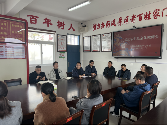 为做好新学期初三毕业班各项工作,激励全体教师鼓足干劲,争创佳绩。3月11日中午,九华山风景区中心学校召开初三毕业班全体教师会。中心学校校长都术才、副校长吴文兵、程卫华及初三全体教师参加会议,会议由教导处主任吴承可主持。
