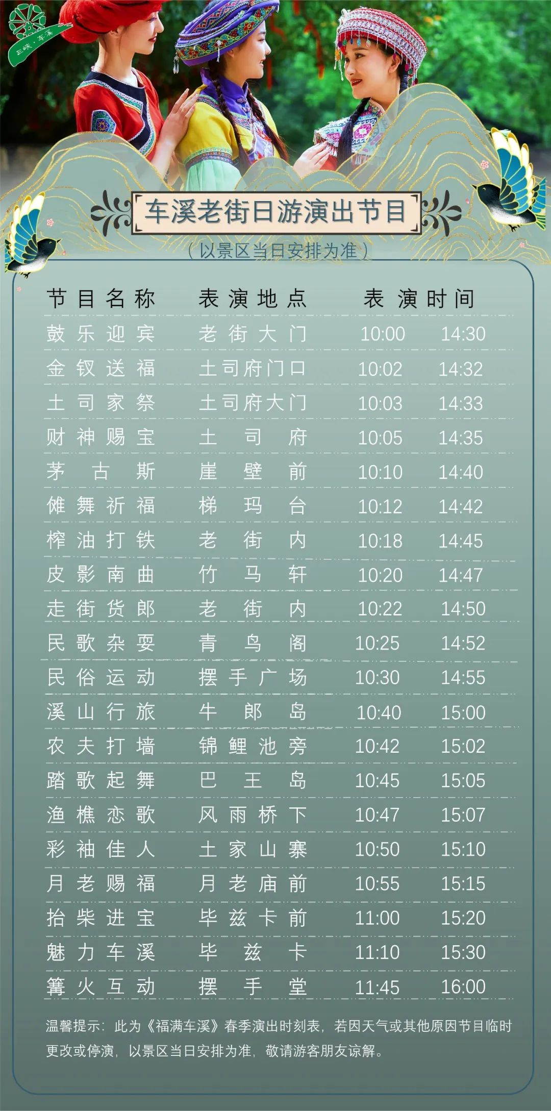 后乘车前往国家AAAA级景区,土家版“清明上河图”,中国最美的【车溪民俗风景区】,参加车溪土家婚礼,吃喜宴、喝喜酒、抢喜床、看民俗,体验八抬大轿的传统婚礼!,景区内巴楚民风古老淳厚,田园风光清新自然,两大自然奇观(植物奇观、地质奇观)车溪自然景观奇特秀丽,至今还保存有第四纪冰川时期遗存下来,属世界罕见的古生腊梅群落3000多亩,被誉为“三峡植物奇观,三种文化特质(民俗歌舞欣赏、农耕稼作展示、古代作坊表演),您可见识“竹子变成纸、泥巴变成陶、苞谷变成酒”的全过程,还可以一试身手,亲自感受劳作之美。四种旅游特色(民俗风情游、休闲体验游、科普考察游、猎奇探险游)无尽的乡土气息如清泉般滋润您的心田,叩开您的心扉,让您跨越时空,回到那古老的年代。体验土家民俗风情观赏原汁原味的土家族歌舞表演,接绣球对山歌。(男嘉宾一定要去抢绣球哦,当一回土家新郎,成为此次旅途中最难忘的记忆。)