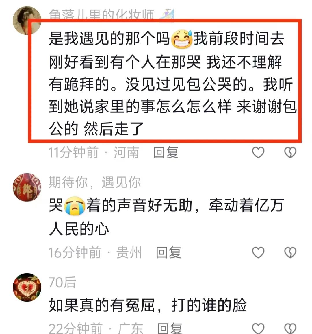 如果该网友之前遇到的女子,与此次跪地大哭的女子是同一人,那么很可能她的生活又发生了变故,她这才走投无路,想让包公助她一臂之力。
