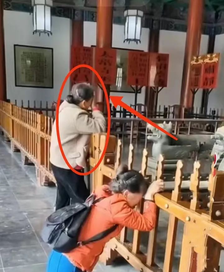 旁边一名老年游客,在该女子的情绪感染下,也悲从中来,站在她旁边,一直默默地抹着眼泪。