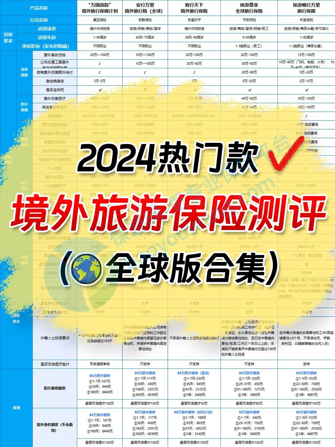 为了更清晰了解各家境外旅游保险的情况,首先给大家上对比图。