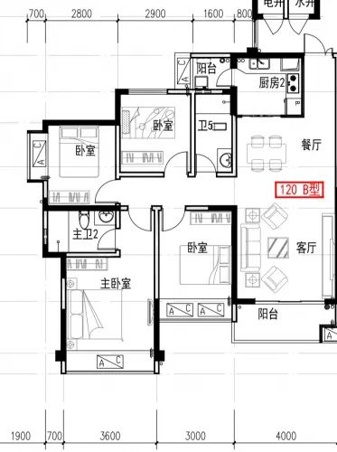 户型:4房2卫