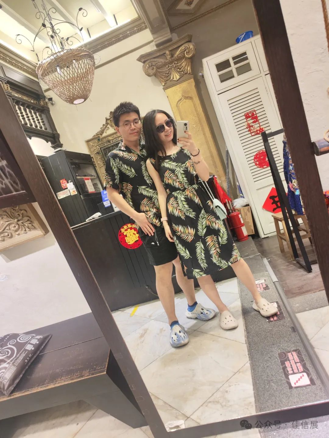 品尝完独特的娘惹菜(感觉像咸辣版本的南方菜系),下午的街头随着旅游团的到来热闹了起来,走进最繁华的中心地带更是摩肩接踵。幸运的两个人选中了同一款式的喜欢的衣服,情侣装+1。