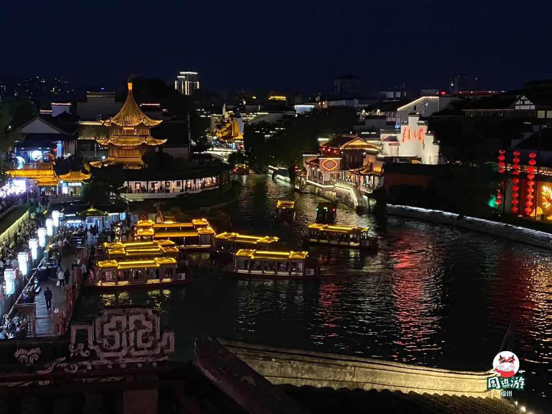 秦淮河两岸的建筑和街道被五彩斑斓的霓虹灯点缀,灯光璀璨辉煌。