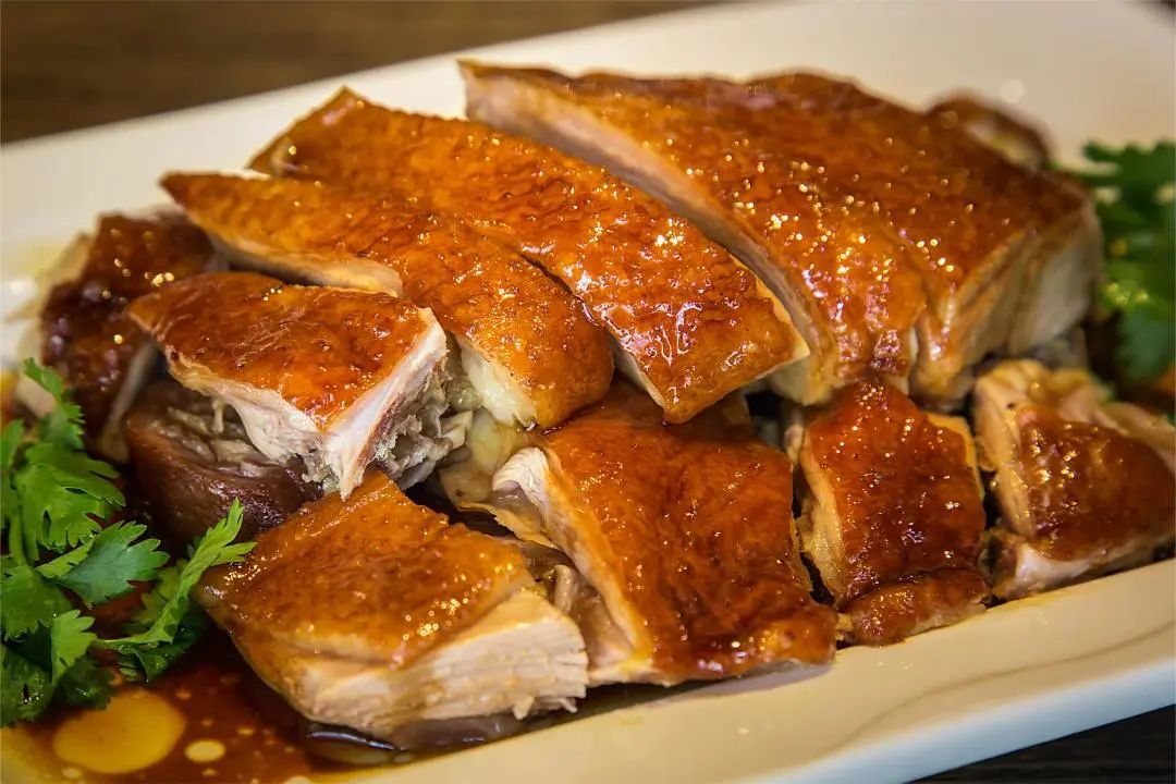 南京的烤鸭外皮焦香,鸭肉鲜嫩,灵魂在于鲜咸甜的卤汁,真的太绝了!