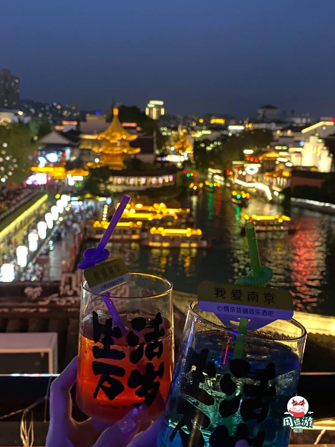 在露天的小酒馆跟好友点上一杯饮料,看着船上的灯光在水面上泛起一片柔和的波光,终于明白了什么叫“夜泊秦淮近酒家”~