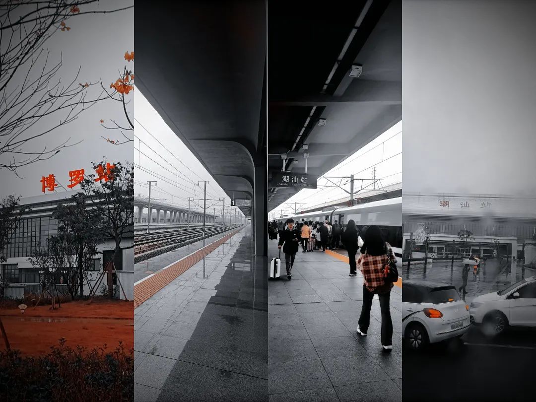 等待了一个多小时后,终于坐上去往潮汕的高铁。在车厢门旁站了差不多两小时,窗外的风景不断变换,前方到站下站上站,过了四五个点,终于顺利到达潮汕站。