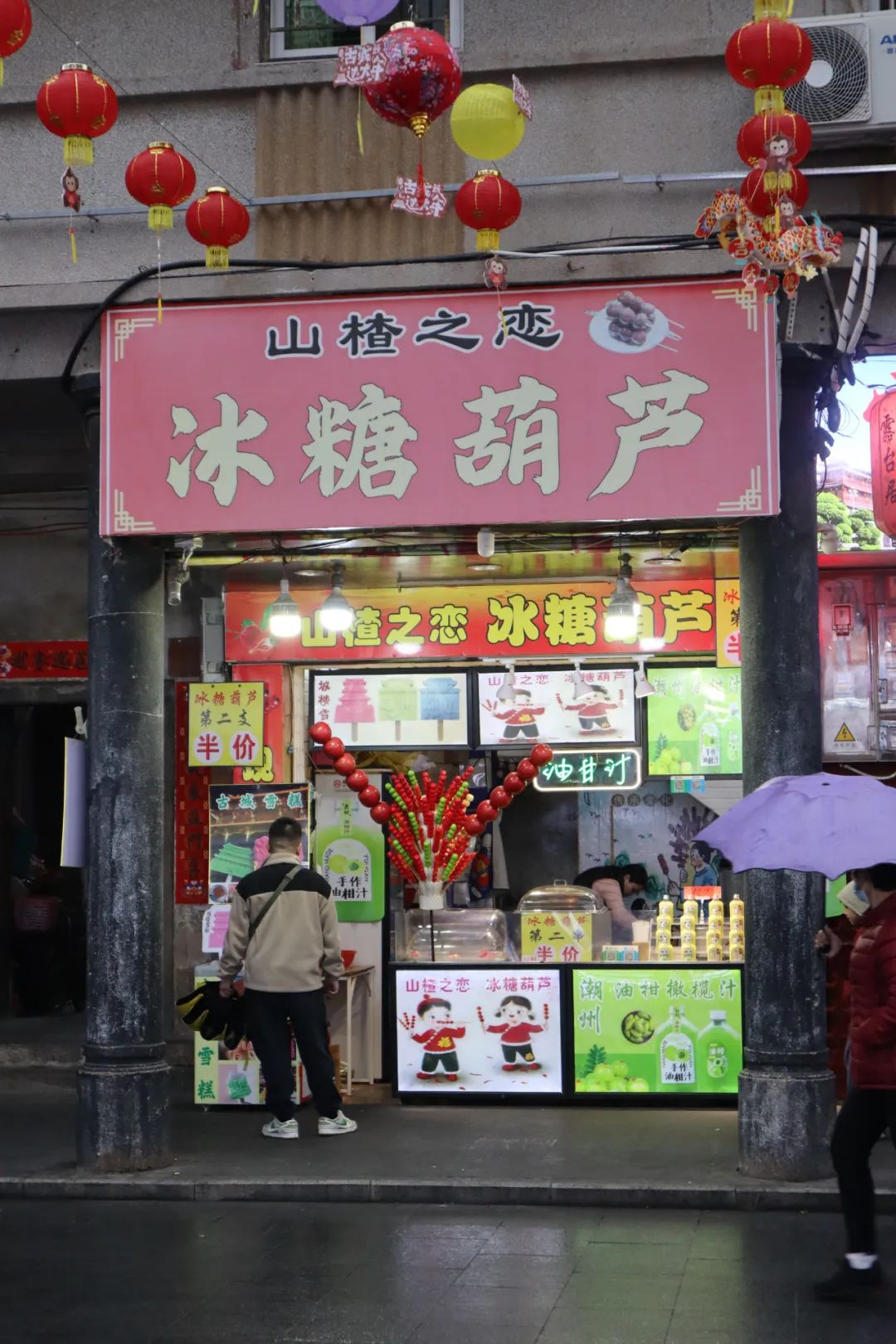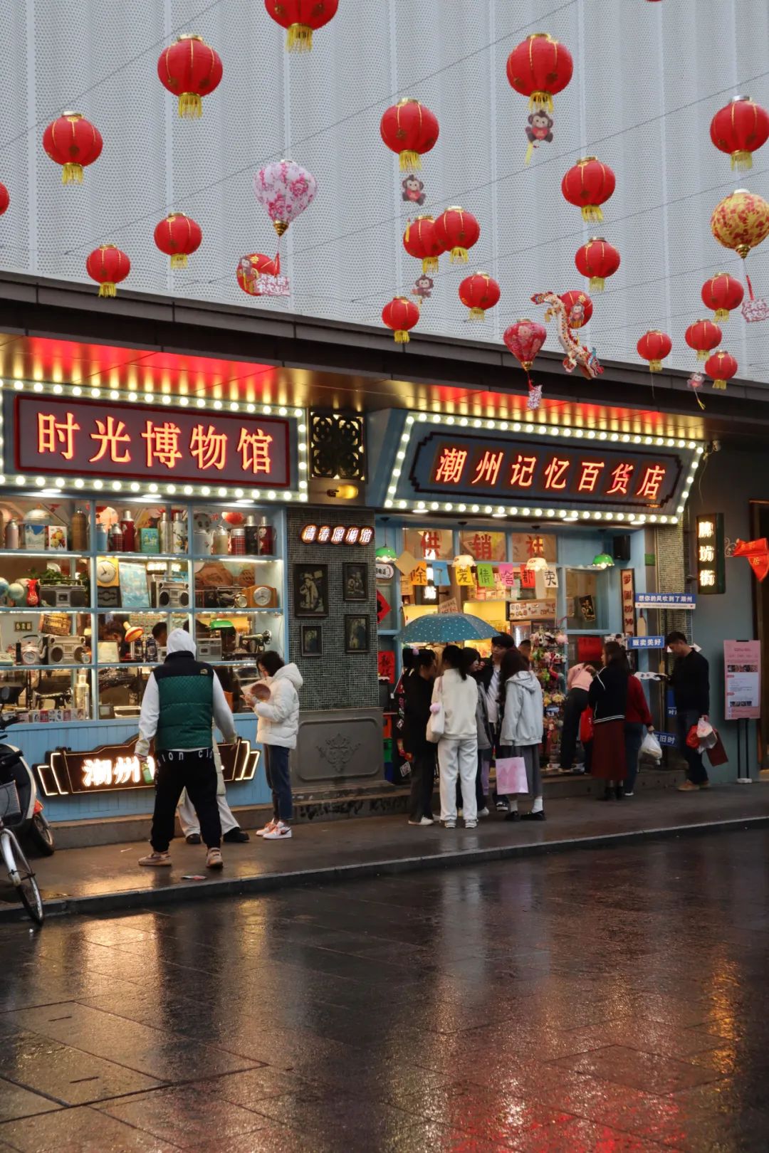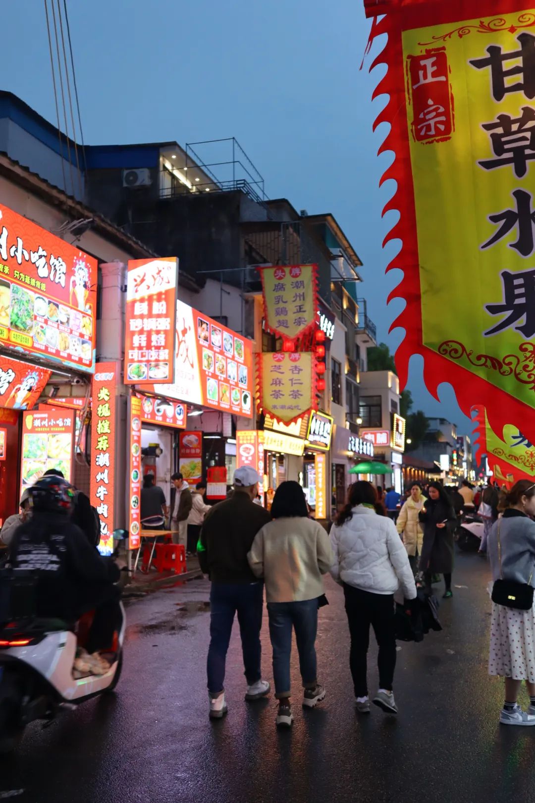 街道两边就是琳琅满目的各类吃喝玩乐店铺,各有各的风格,当然也会以当地潮州特色牛肉丸、生腌、油柑汁、鸭屎香等店铺为主,都在为招揽客人各显神通。