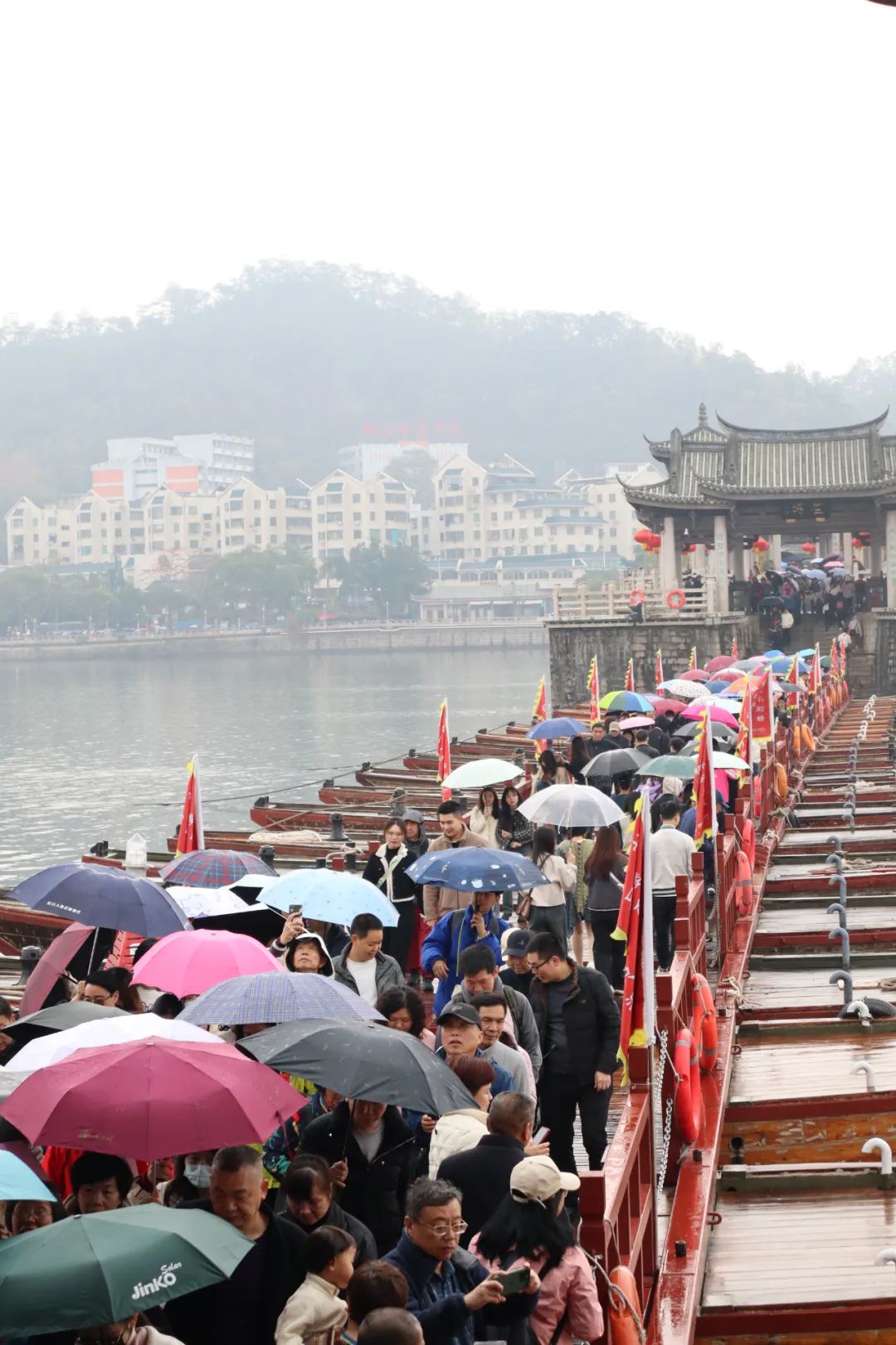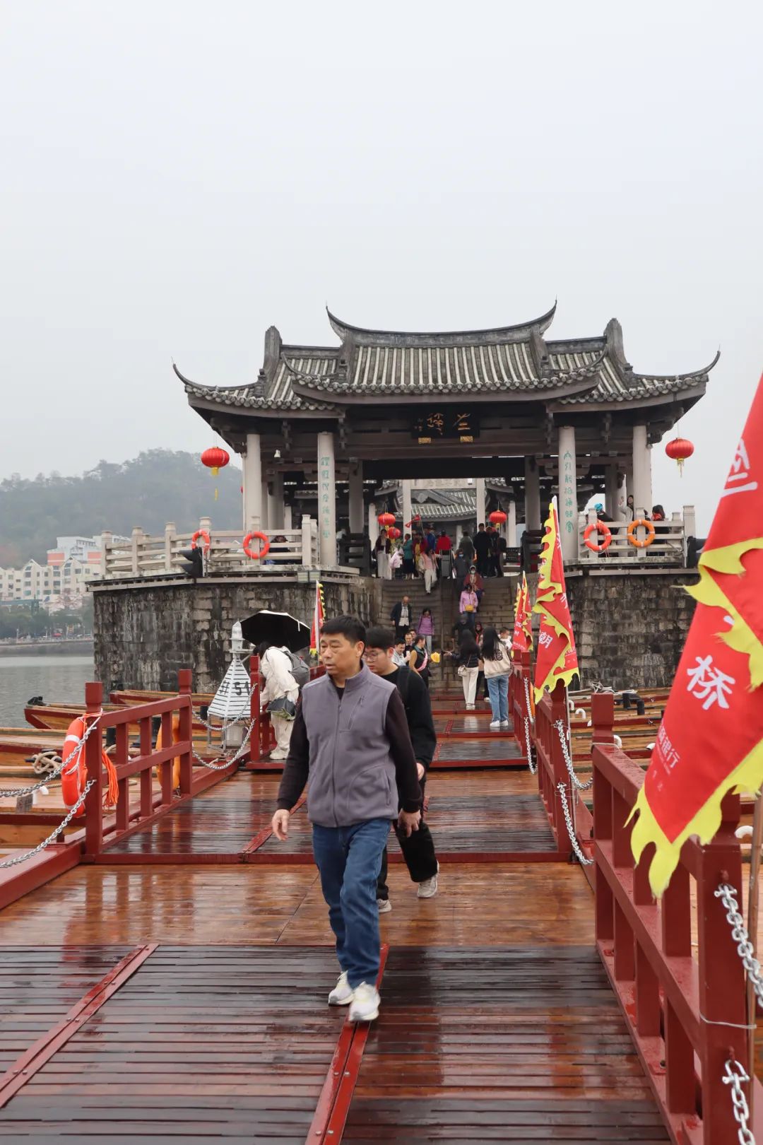 这个桥确实挺有特色的,中式风格的桥梁,加上中间部分由多艘船组合的桥面,可自由拆分,让船只过去,这点就让人觉得神奇,也佩服古代人的智慧,有如此神操作。