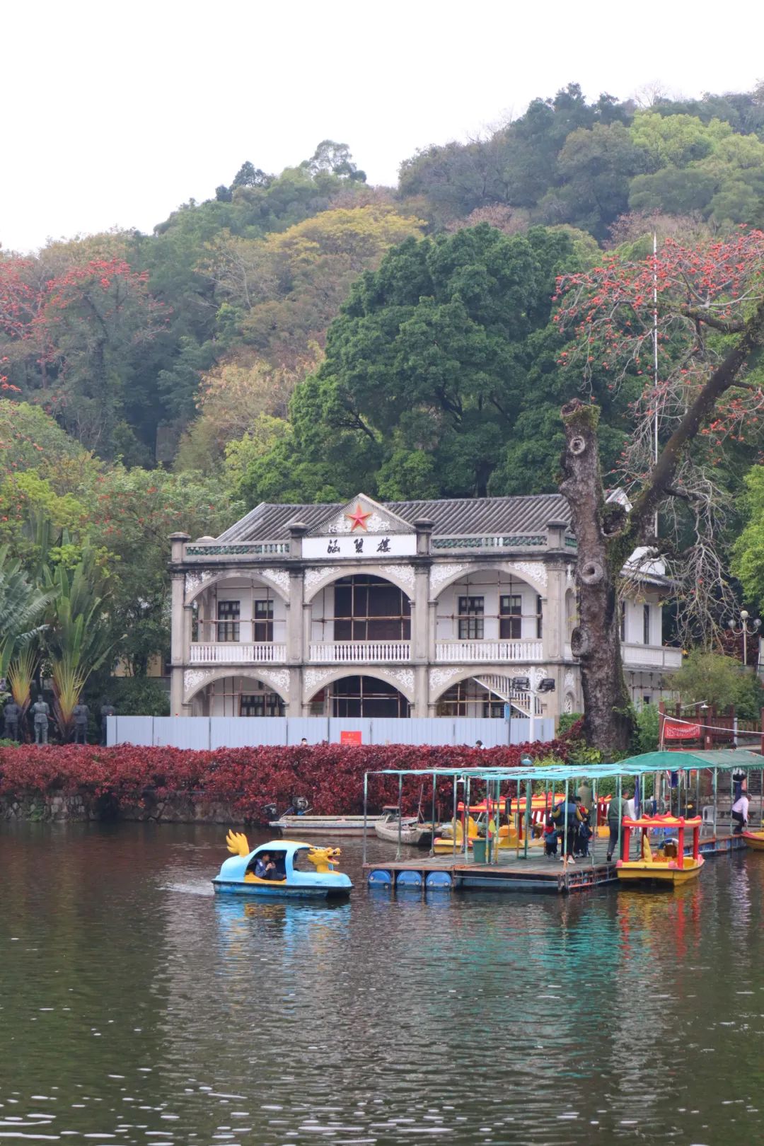 继续走了十多分钟,终于看着潮州西湖的门牌坊,最后一站的目的地也算了例行完成,在西湖逛了一圈,风景还算不错,可以环湖玩脚踏船,还有湖心亭、烈士陵园、革命会晤大楼、雕刻群、动物园、儿童乐园等项目,当散个步也是不错的。当然对比惠州西湖,我更喜欢我们惠州西湖啦~