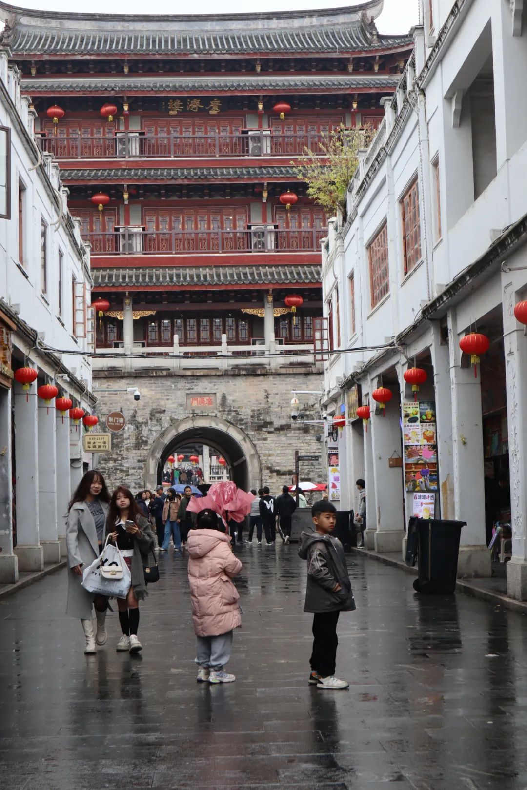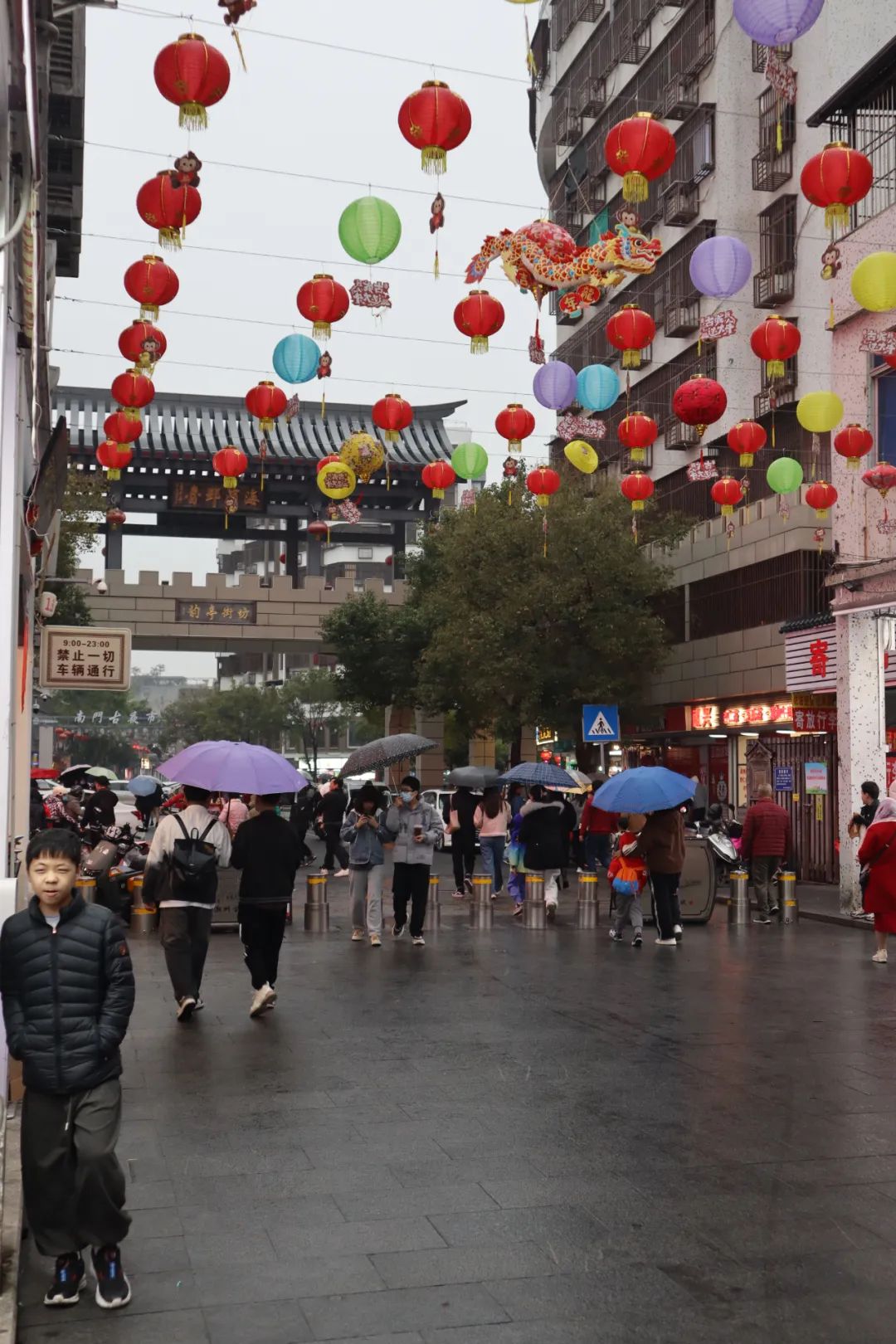 不知道是不是下雨的原因,刚开始走没觉得很多人,一路漫游拍照,看到有意思的店铺就进去看两眼,走着走着到达了差不多古城中心,人也就多起来。