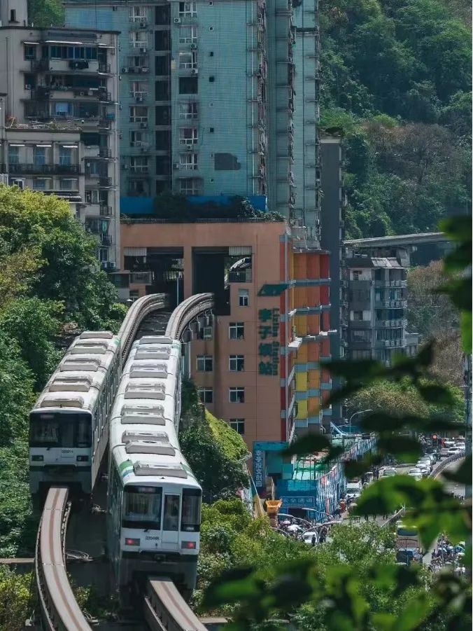它是轻轨穿楼的震撼与浪漫