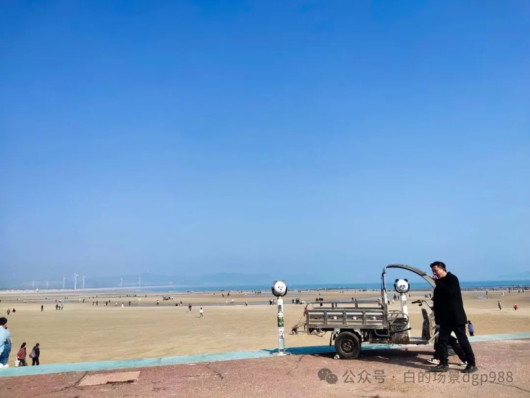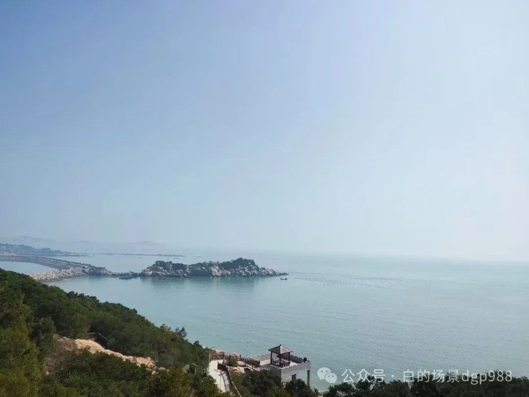 一对五十左右海边居民,已在他们的景点经营棚里开工了,主打一个虾泥煎饼。在棚子前面,停着一大溜车,人大多跑到观景台上去了。其中一辆与众不同,它的主人坐在车后的小马扎上,看样子刚洗漱完毕,一边喝水,一边晒着新鲜的太阳,满脸的惬意。在他前面,摊开着可折叠的小茶几,上面除了茶杯,还放着一个小型电饭煲,一根电线从后备箱牵出。再看那后备箱,塞得满满当当却错落有致。正欲细看,那主人大哥见我感兴趣,立马站起身,热情地向我介绍起来:右边是个小冰箱,可以储存几天食物;左边是电瓶,可向电饭煲等炊具供电;中间是个水箱,容积三十升;其他小件可放缝隙中。我对能向电饭煲供电的电瓶感兴趣,虽然大哥一再强调,可以向电饭煲供电很长时间,我还是对其可靠性表示怀疑。交谈中,还了解到这位大哥来自扬州,出来几天了,冰箱里放着面做的食品,电饭煲里正放着蒸包,一会儿出来就变成了煎包,带壳的。回过头来到早点棚里,买了两个油炸虾泥饼,热乎乎的,不知道这饼里有多少虾泥,但这口感绝对满意。围着山顶一堆大石头的,是玻璃栈道观景台。景台上对前面的景致一览无余,而且看得更远。碧海蓝天,原先海中岛屿看得更清晰了,心想若到那孤悬海外的岛上生活,可能更有意思。山顶石头堆上,据说原来是一个海防哨卡,可沿着一个石头垒成的甬道上去,现在这些早已成了模糊的遗迹了。