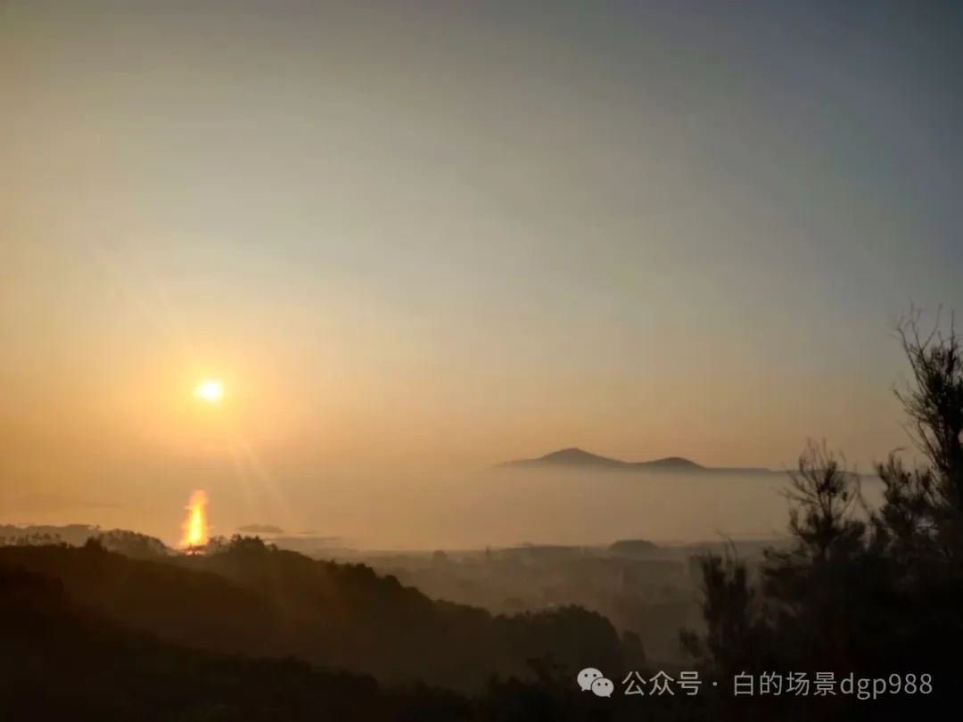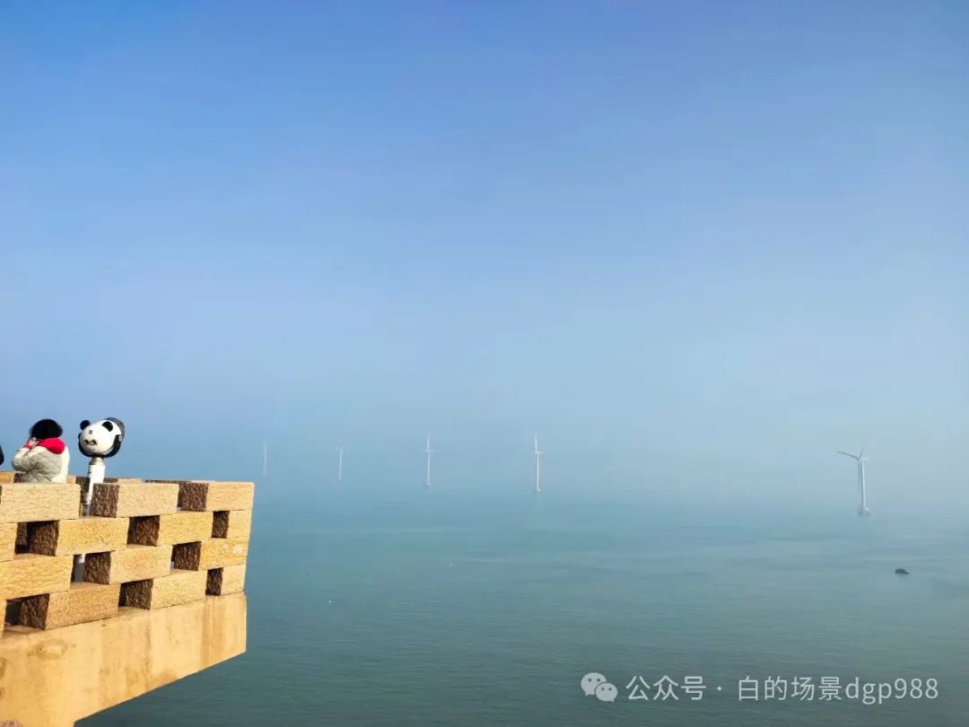 京台高速修到了平潭,与台湾隔海相望,其深意不言而喻。晚上宿于京台高速末梢服务区,计划用半天时间沿环岛公路走一圈。平潭有两座大桥与大陆联系,北面是京台高速所在,南边是渔平高速所在。我们可先向北向东,到岛的北端犄角去看一看,那里有几个海湾。然后沿着岛的东面环岛公路南下,从渔平高速出岛。早晨出服务区向北,没走多少平坦路就进入山地,山丘不高不大,岩石树木不少,一阵盘旋曲折、高低跌宕之后,来到第一个观景台,后来才知道,岛上沿海观景台是常规配置。观景台在一个小山丘顶端,上有风电塔一座,观景台围着风电塔而建,可以近距离地感受。为了看日出,在我之前已有四个人在那里等着,攀谈了解到,其中三个人来自江苏,一个人来江西。来自江苏的一个小伙子,早已架着摄像机等着,生怕错过太阳从海中升起的样子。其实是有雾气的,别说大海,就是山下近处的城镇,也只隐隐绰绰地看到高楼的上端。近二十多分钟的等待后,太阳终于从雾中出来了。由于雾,无法判断那是不是海天相接处,但在等待中,它终究是出来了。于是,雾气也开始加速消散。