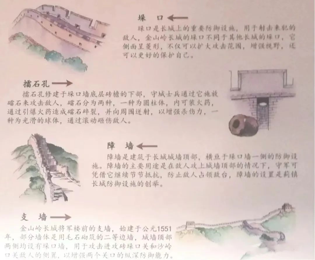 将军楼、撞石孔、跺口、挡马墙。。。从未真实接触过的古代防御工事,从来没听说过的名词,一次登金岭长城如同一堂生动形象的历史课,将孩子们带回几百年前的战争年代,学习古代军事知识,深入了解中华民民族抵御外侮的历史传承,激发孩子们的爱国热情与民族自豪感。