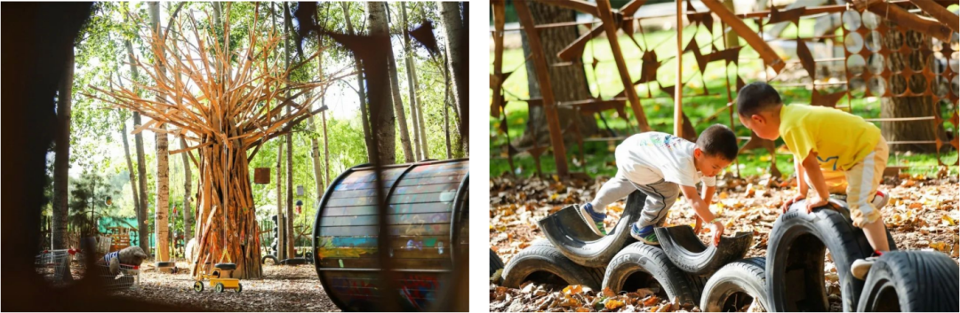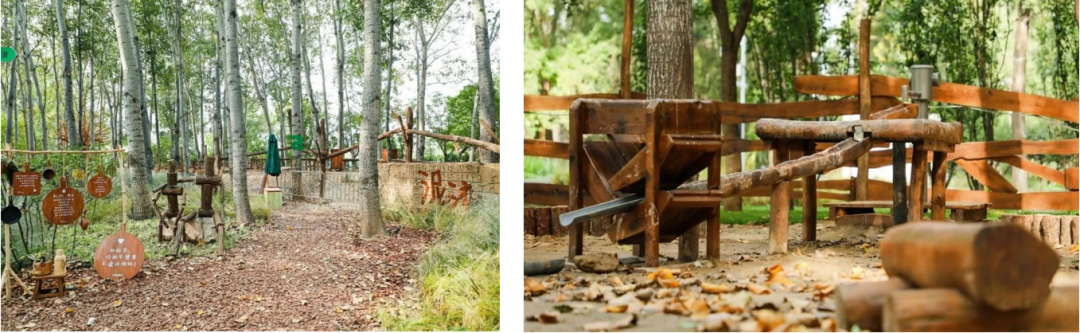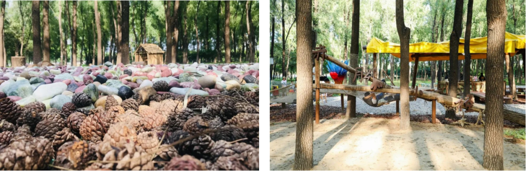 树皮碎屑铺满整个场地,在松柏的掩映下,更显得原生态,适合孩子们放心畅玩!无动力区的游玩路线我们也进行了精心的规划布局,充分锻炼孩子们的四肢及核心力量,科学促进孩子们的运动感统协同。