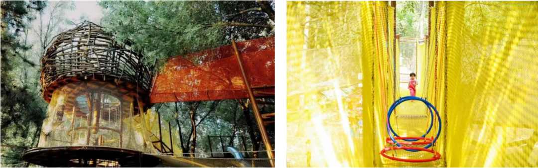 在渔村,树与树之间,彩色渔网编织出炫丽的空中世界,小孩子可以在树林间肆意的穿梭。可以在空中飞檐走壁,自由自在的跑啊、跳啊,释放着熊孩子们的能量~