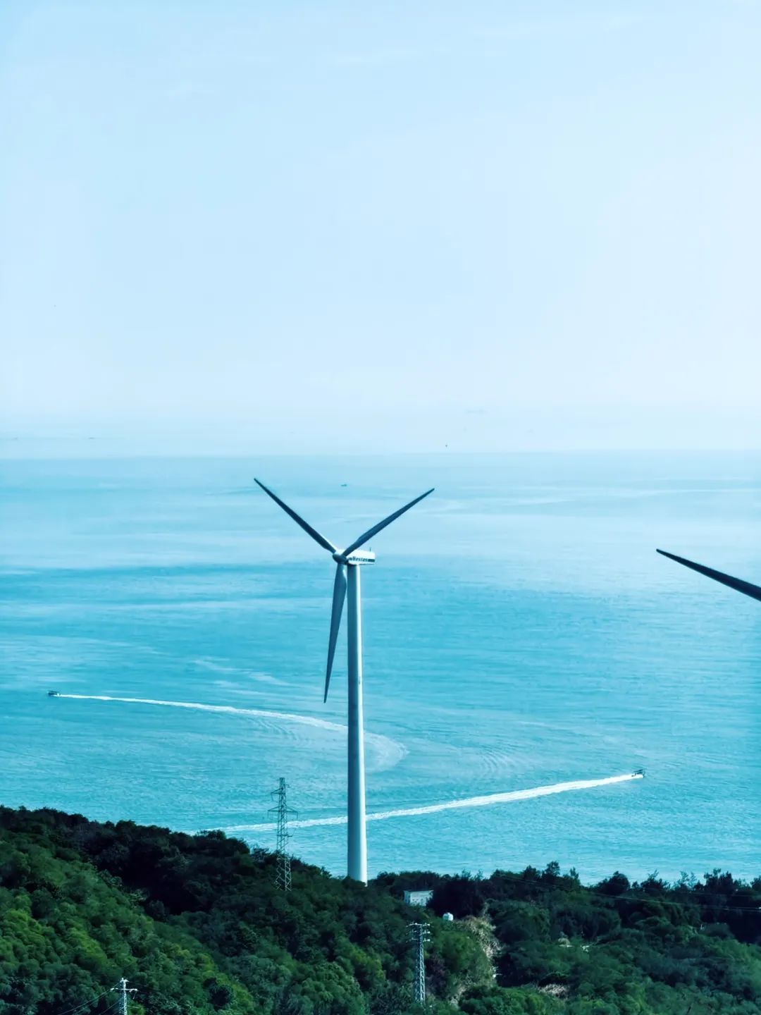 我站在山顶,俯瞰整个南澳岛,海天一色,景色壮丽无比。而风车在山顶转动着,仿佛是在为这片土地带来无尽的活力和希望。