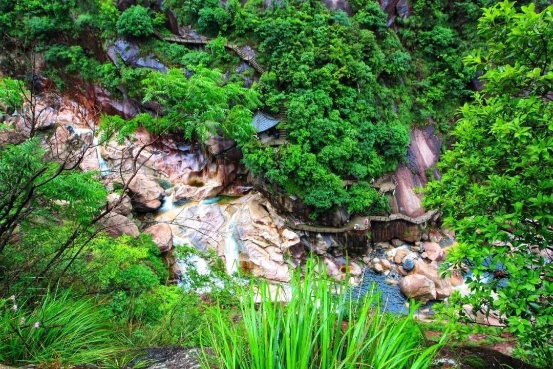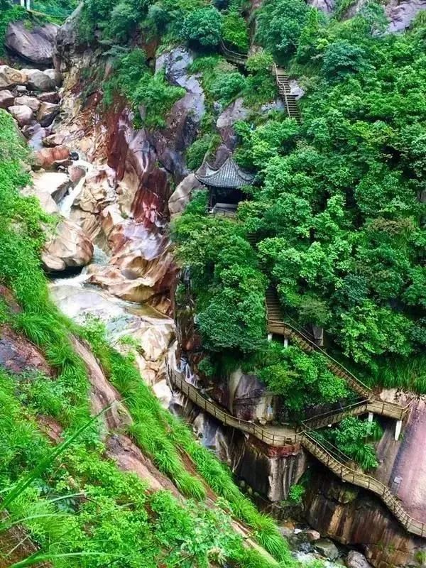 走在被树木芦苇掩映的青石板路上,看山峦叠嶂,怪石嵯峨,望峡谷幽深,郁郁葱葱,赏云烟曼妙,云蒸霞蔚,听溪流奔腾,泉石作响,品古韵悠悠,古道迢迢。