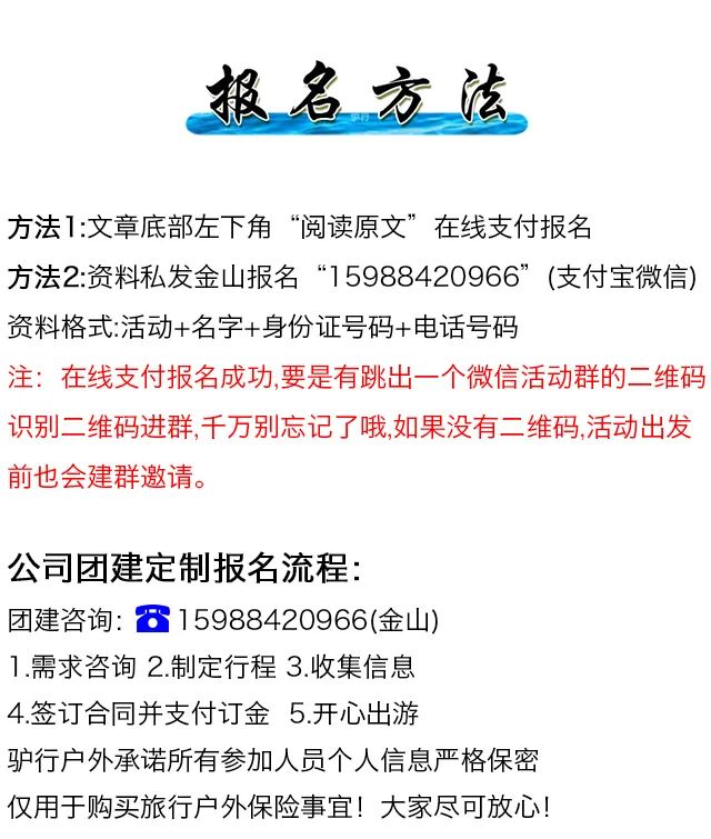 注:以上行程仅供参考,实际计划可能会因活动参加的人数、体能状况、新老驴比例、天气等因素而适当变动,以活动领队决定为准!!!