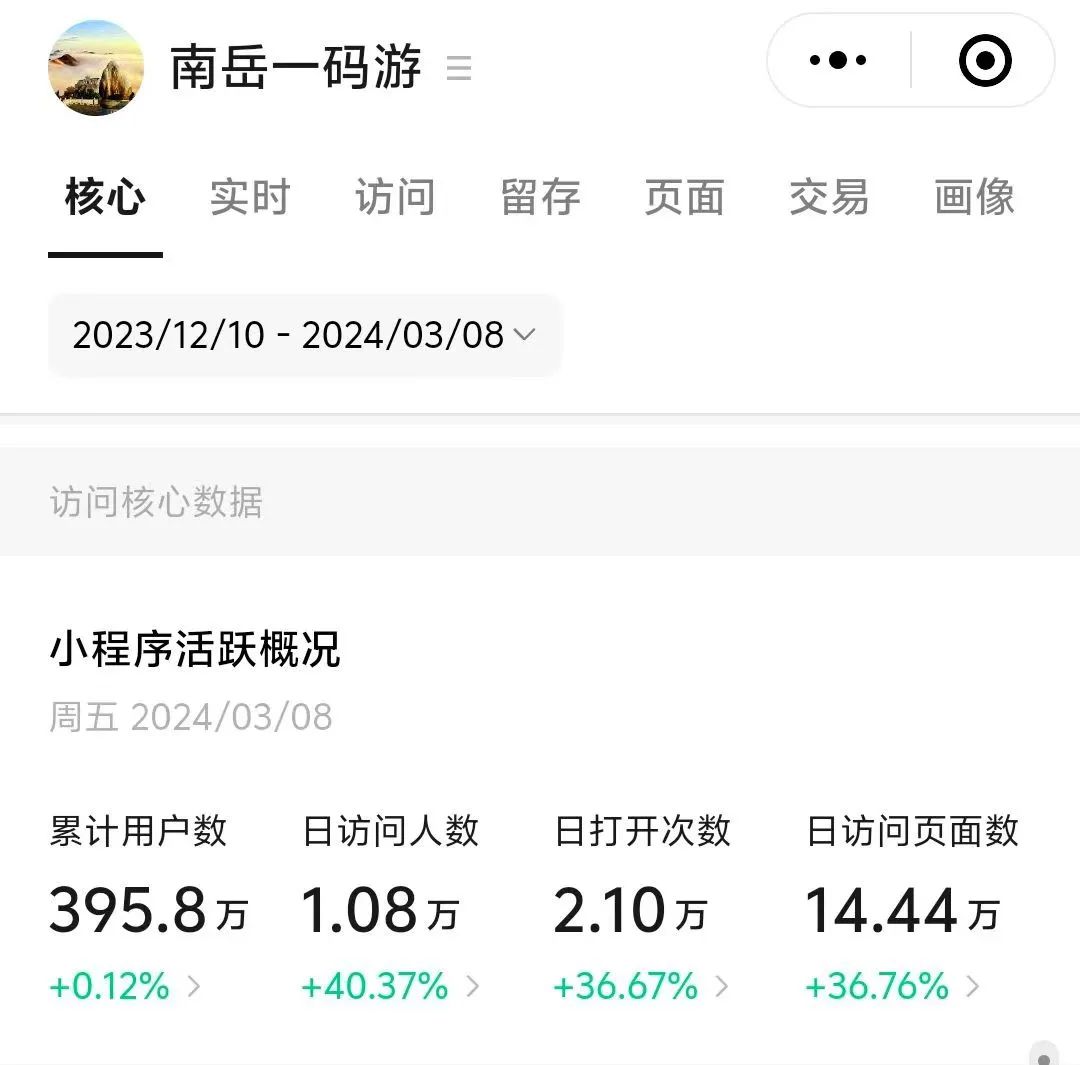 截至2024年3月8日,“南岳一码游”平台累计用户数已达395.8万。旅游民宿/酒店上线以来持续火热,从平台线上下单支付到线下核销办理入住更是形成了完整闭环,为游客提供一站式旅游体验,为涉旅企业提供新选择、新商机,注入新流量。