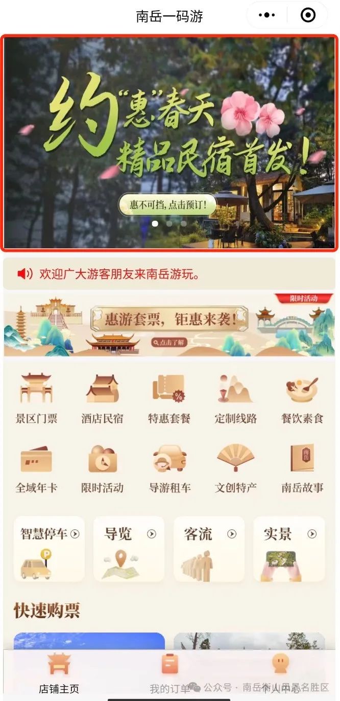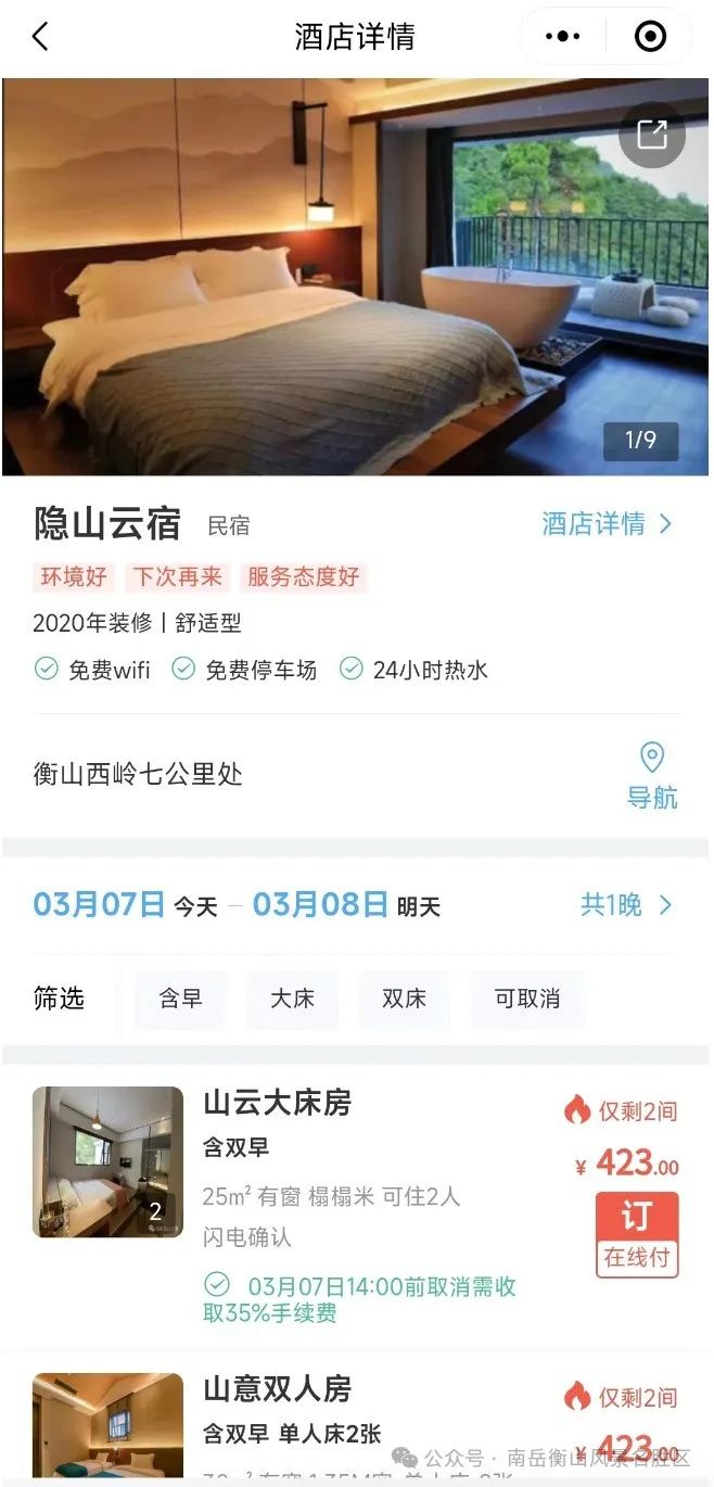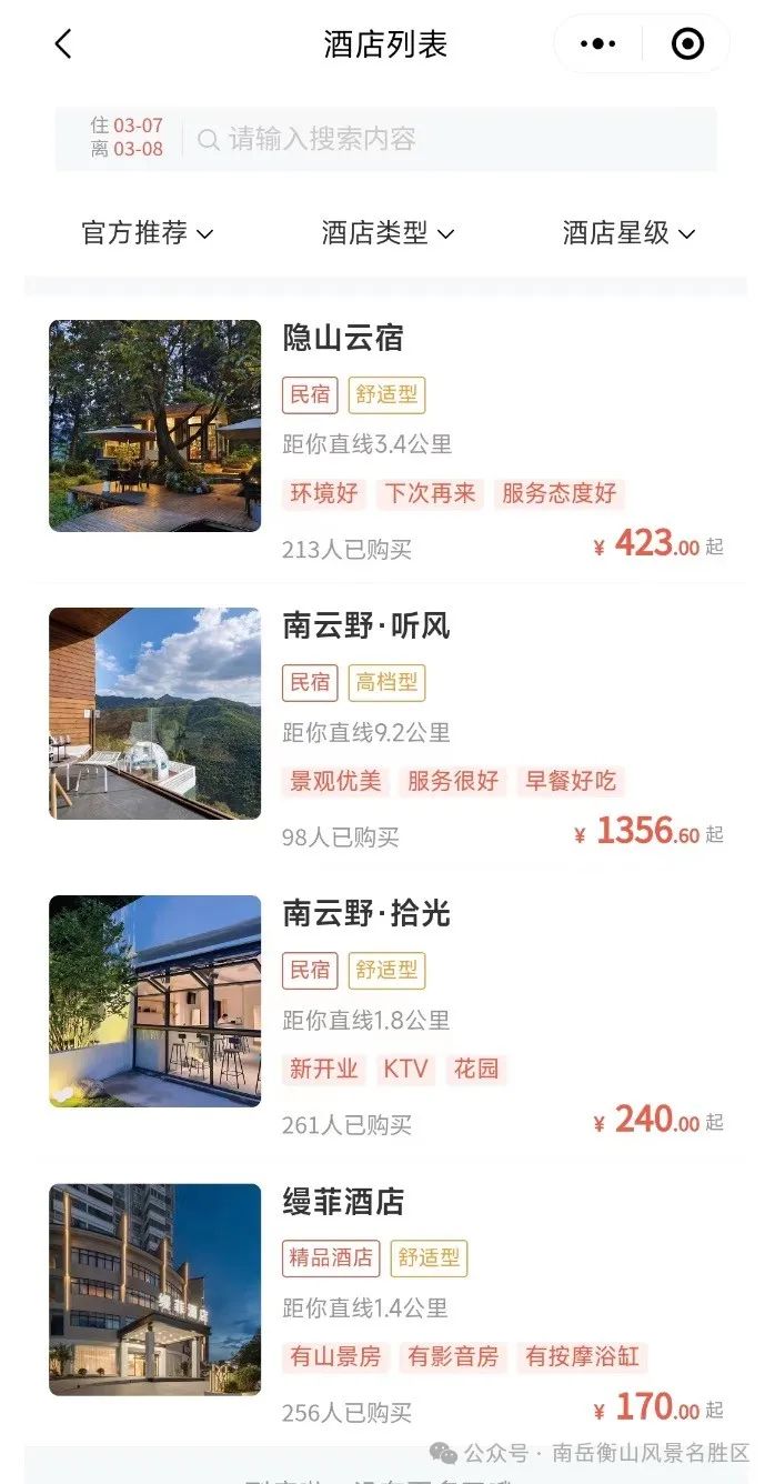 3月5日,“南岳一码游”平台正式完成账号主体的迁移变更,同步推出4家旅游民宿/酒店。