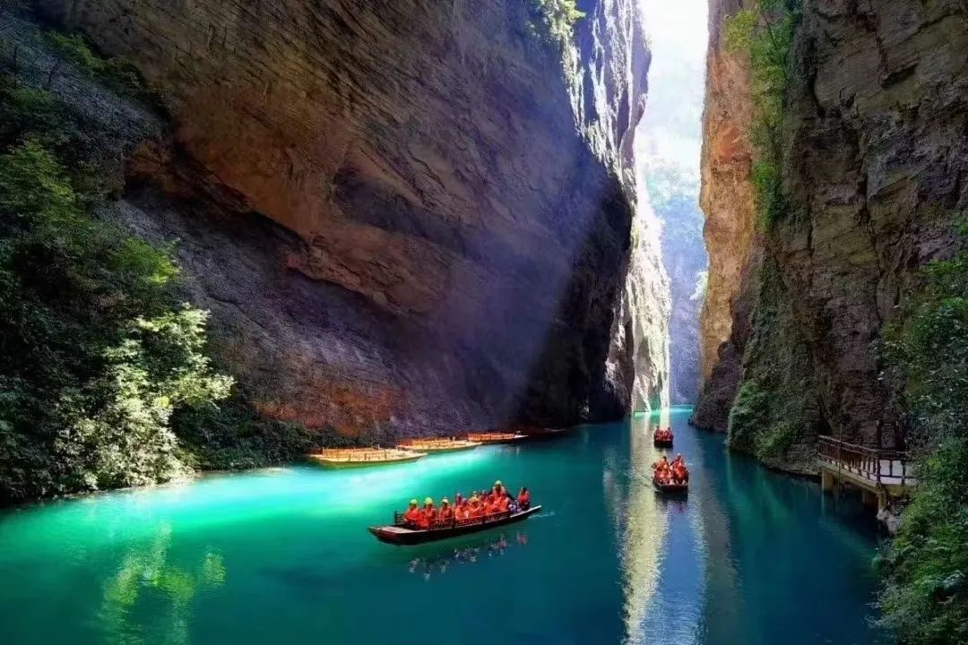 屏山风景如画,幽深地缝古桃源胜景,无不蕴藏土家族浓厚的文化底蕴。峡谷溪水清澈见底,乘一叶小舟,穿梭在群山之中,舟行碧波上,人在画中游,体验悬浮之感,船行其中犹如太空飞船。也是被无数网友戏称中国的“仙本那”。
