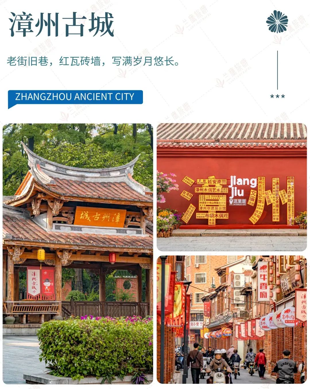游览【漳州古城】,位于“海滨邹鲁”、国家历史文化名城漳州。古城是漳州最有价值的核心区,同时也是全国第一个国家级文化生态保护区——闽南文化生态保护实验区的重要组成部分。漳州古城地处商贸繁华的城市中心区,又是历史建筑、传统文化集中的老城区,“老街情、慢生活、闽南味、民国风、台侨缘”五大特色非常鲜明,文化旅游资源十分丰富。2004年荣获“联合国教科文组织亚太地区文化遗产保护项目荣誉奖”,入选首批“中国历史文化街区”。