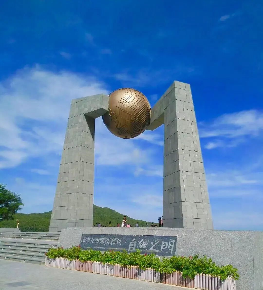 参观【北回归线标志塔】占地面积33亩,有前广场,如茵绿草坪和主景点北回归线标志塔。北回归线标志塔总设计师郑少文没计融合了天文现象和常识。叫做“自然之门”。标志塔主体石柱干挂零件采用抗腐蚀的不绣钢,整个球体像载人航天飞机返回舱,球体内各个支撑点均匀的撑开,保证了球体的均匀和稳定!