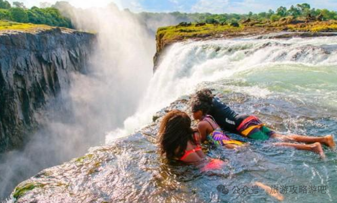 在尚比亚维多利亚瀑布边缘,有一个名为“死亡泳池”的天然水池,勇敢者在这里游泳,仿佛与死神擦肩而过。