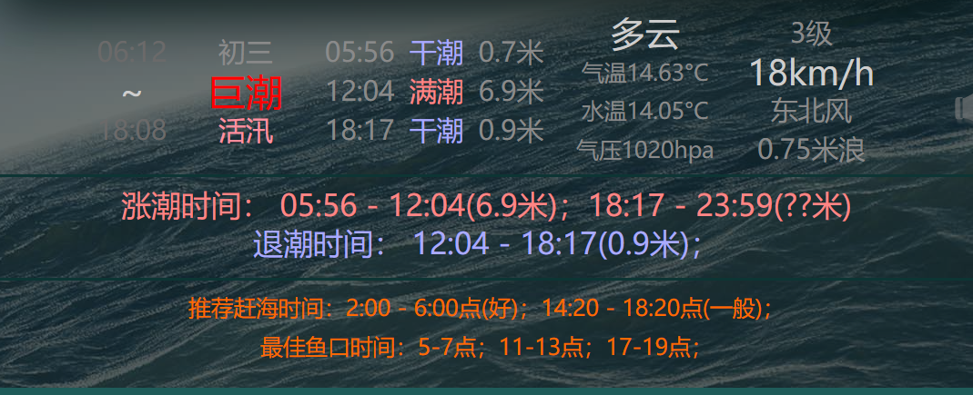 南风天、气温在21-25左右、空气湿度高、涨潮的时候
