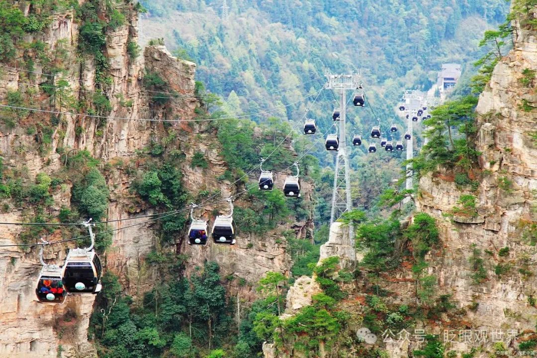 进入景区,我们首先选择乘坐索道游览主要景点。索道缓缓上升,我们仿佛置身于云端之上,俯瞰着整个景区的美景。天界峰,那座耸立在群山之中的巍峨巨峰,在阳光的照耀下熠熠生辉,仿佛是一位守护神,守护着这片神秘的土地。南天一柱,更是令人叹为观止,那根直插云霄的巨石,仿佛是大自然的鬼斧神工,让人惊叹不已。