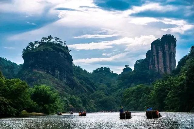 武夷山是福建著名的山水胜地,这里有奇峰秀水、古树参天、岩洞幽深。在这里,你可以乘坐竹筏漂流九曲溪,欣赏两岸美景;还可以登山探险,感受大自然的鬼斧神工。