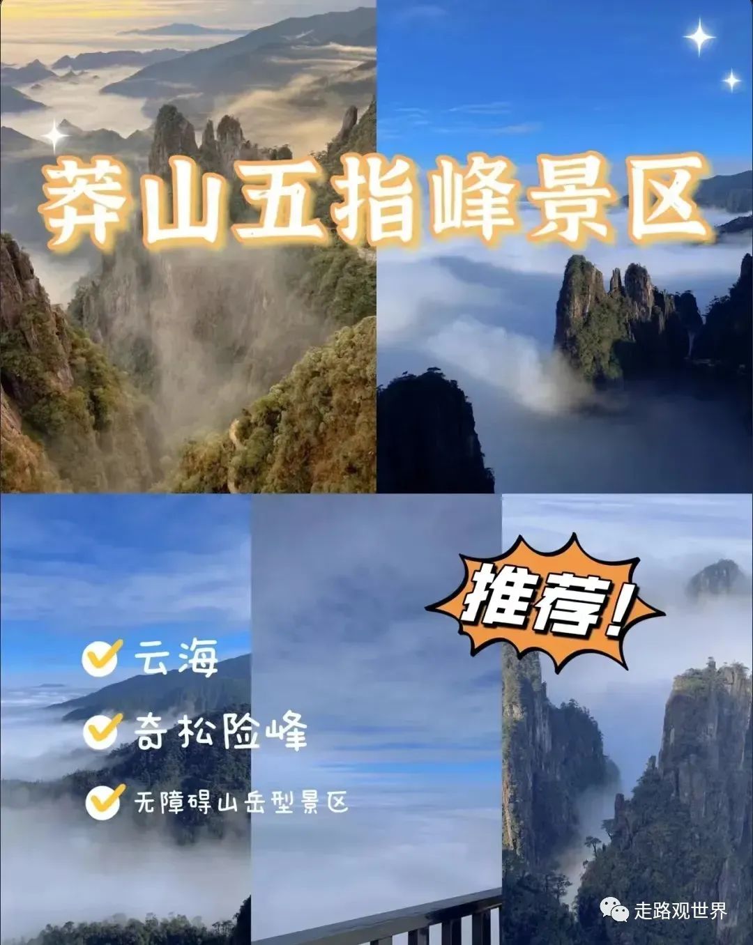 莽山安排莽山景区新开发的新秀景点五指峰景区,不去常规的天台山寨等景点(莽山常规景点景色太一般了),行程还加了世界地质,给旅排最佳最精华的美景让各位旅友此行不留任何遗憾!!!