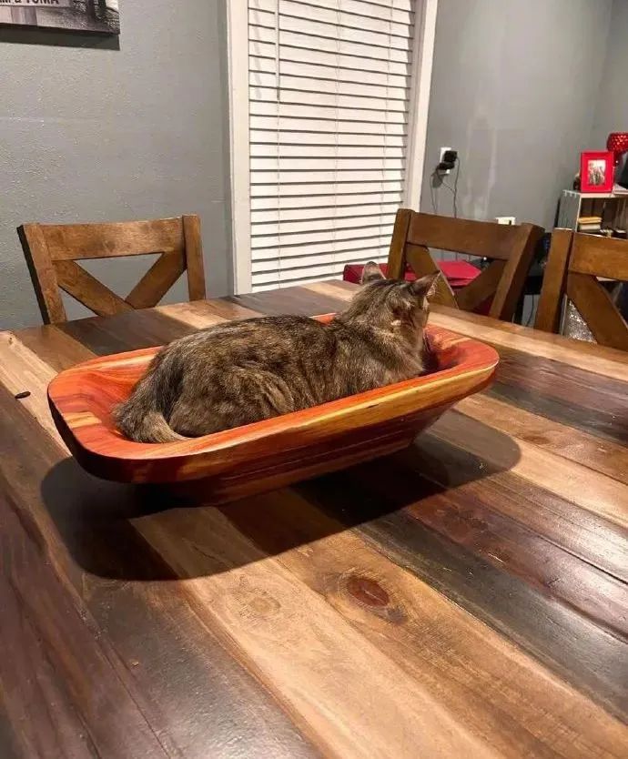 铲屎官旅游时买了个水果盘工艺品,立马被猫霸占了:谢谢送的猫窝!