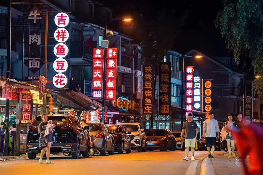 这里还藏着不少的美食,走进美食街,美食沿街道两侧一字排开,特色酸菜面块、锅盔……每一样都馋得人流口水~