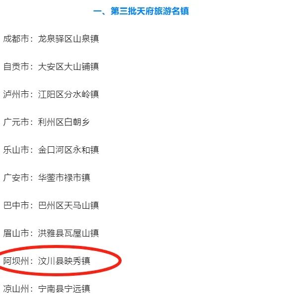 成为新一批天府旅游名镇?